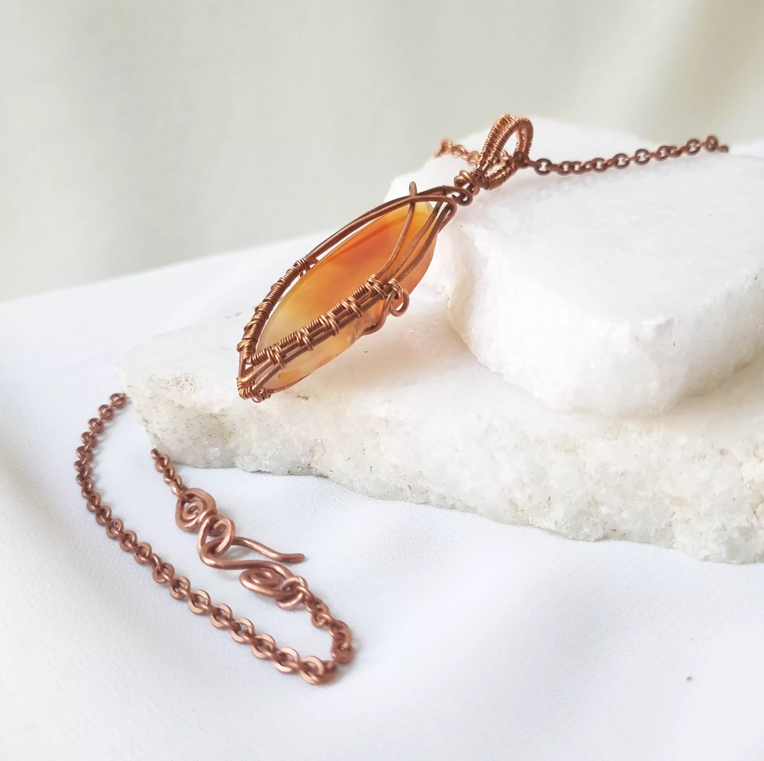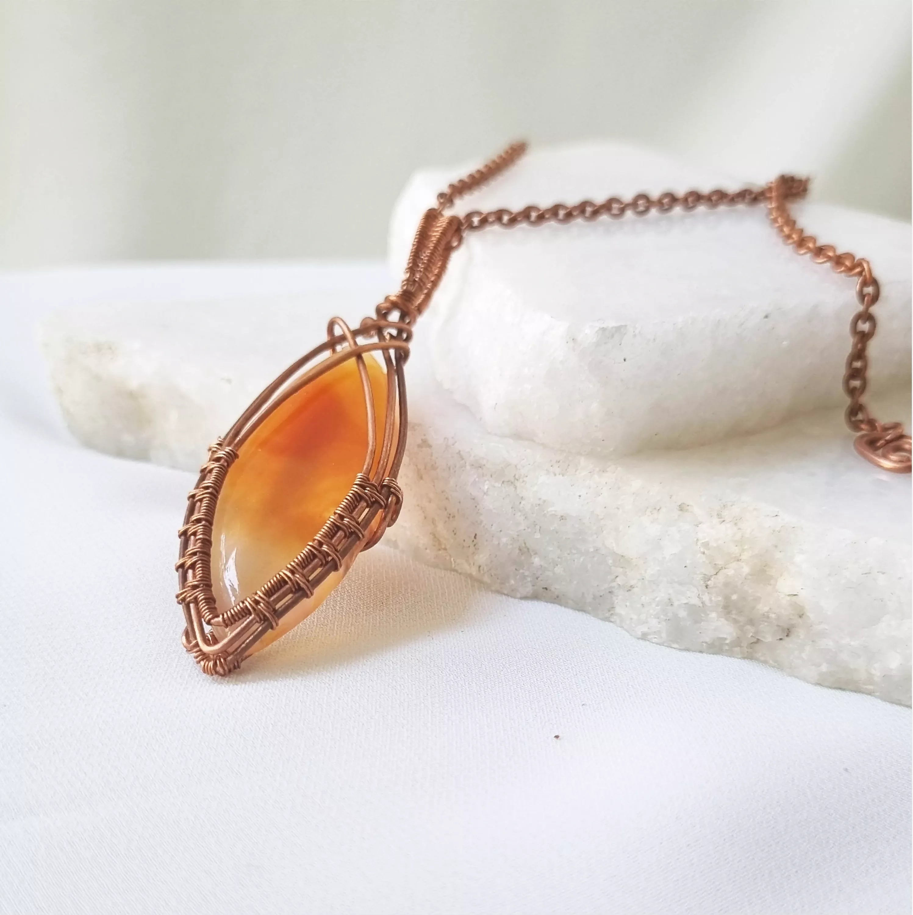 May the healing energy of this gorgeous agate and copper necklace help re-balance and harmonize your mind, body and spirit. This crystal will give you strength and courage, and protect you from negative influences.
