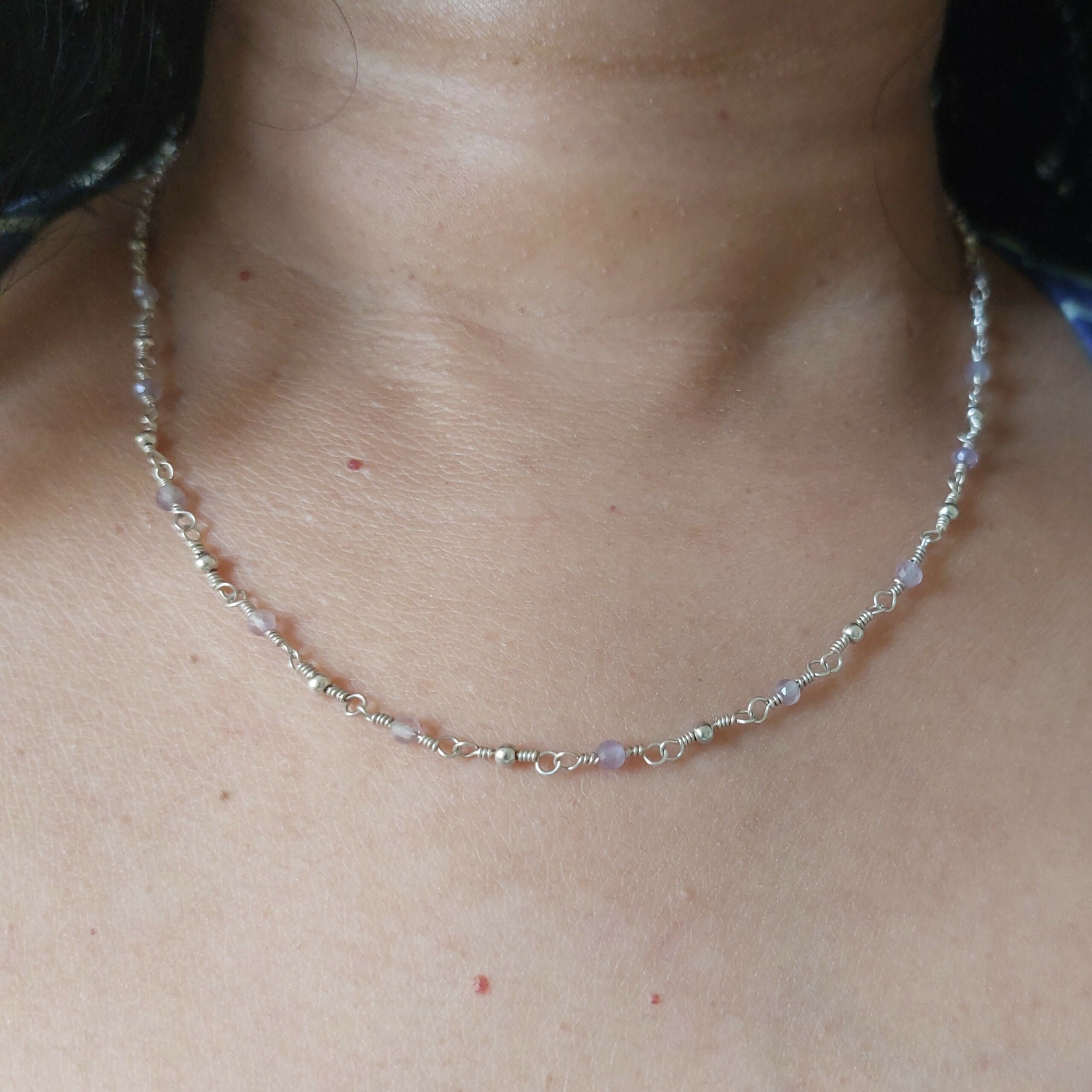 Wear this beautiful beaded, hand wrapped amethyst sterling silver chain on its own or pair it with other sterling silver pendants on the website.