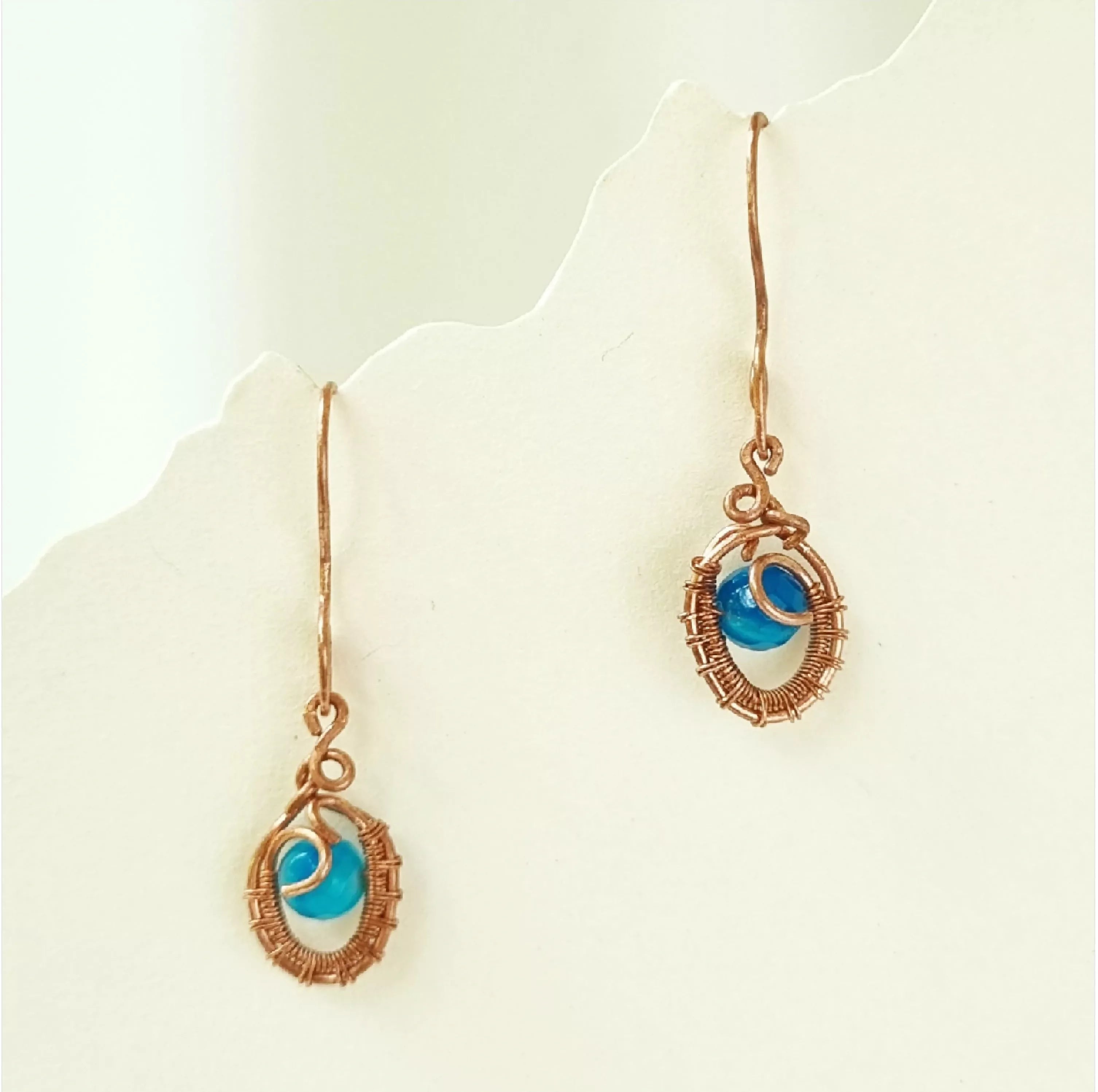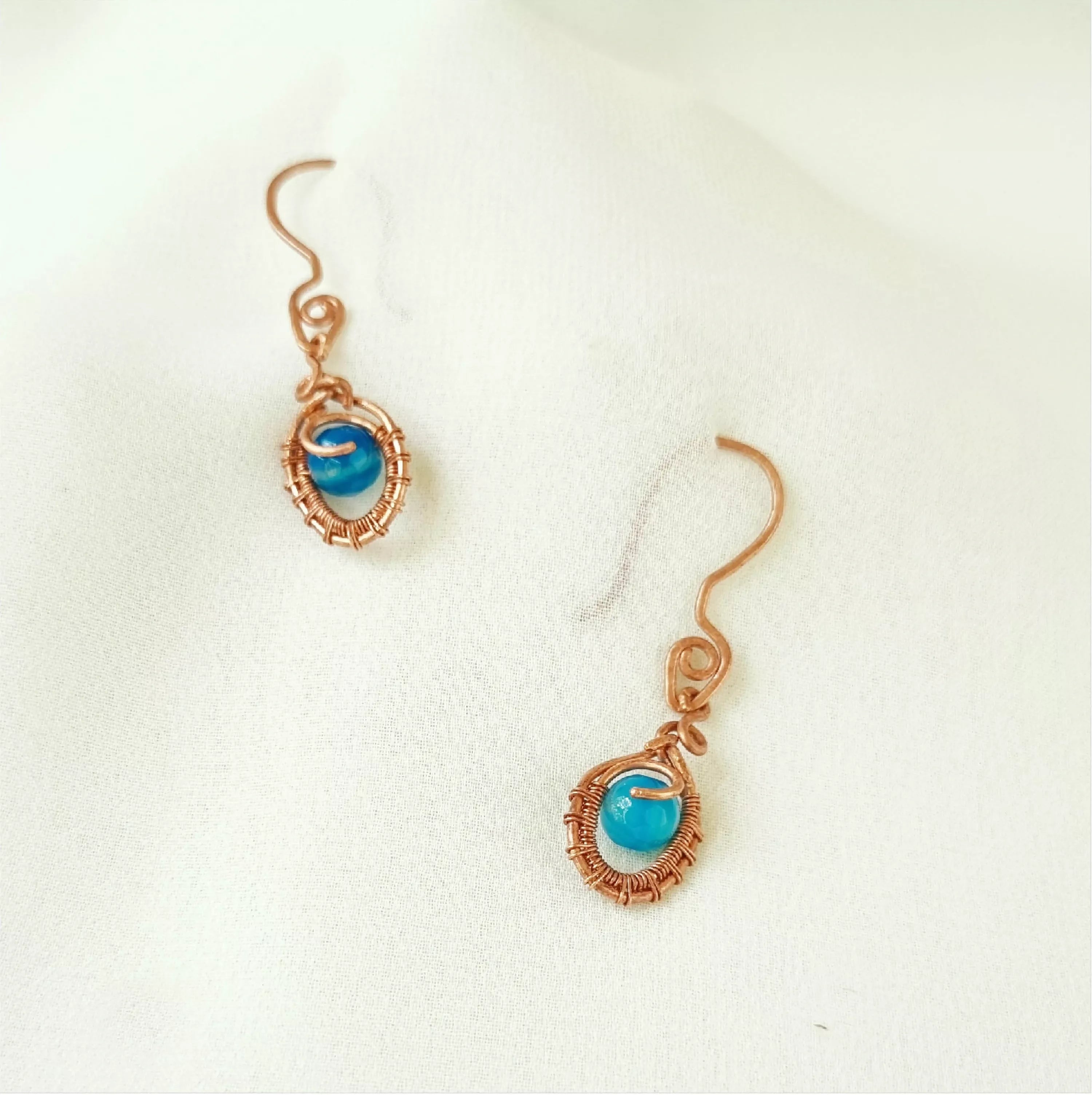 May this pair of handcrafted Copper and Blue Agate earrings bring you confidence and strength on you path to abundance. Blue Agate radiates calming energy that can energize your heart and mind. It replaces self-destructive patterns of thinking with new ways to approach life’s challenges.