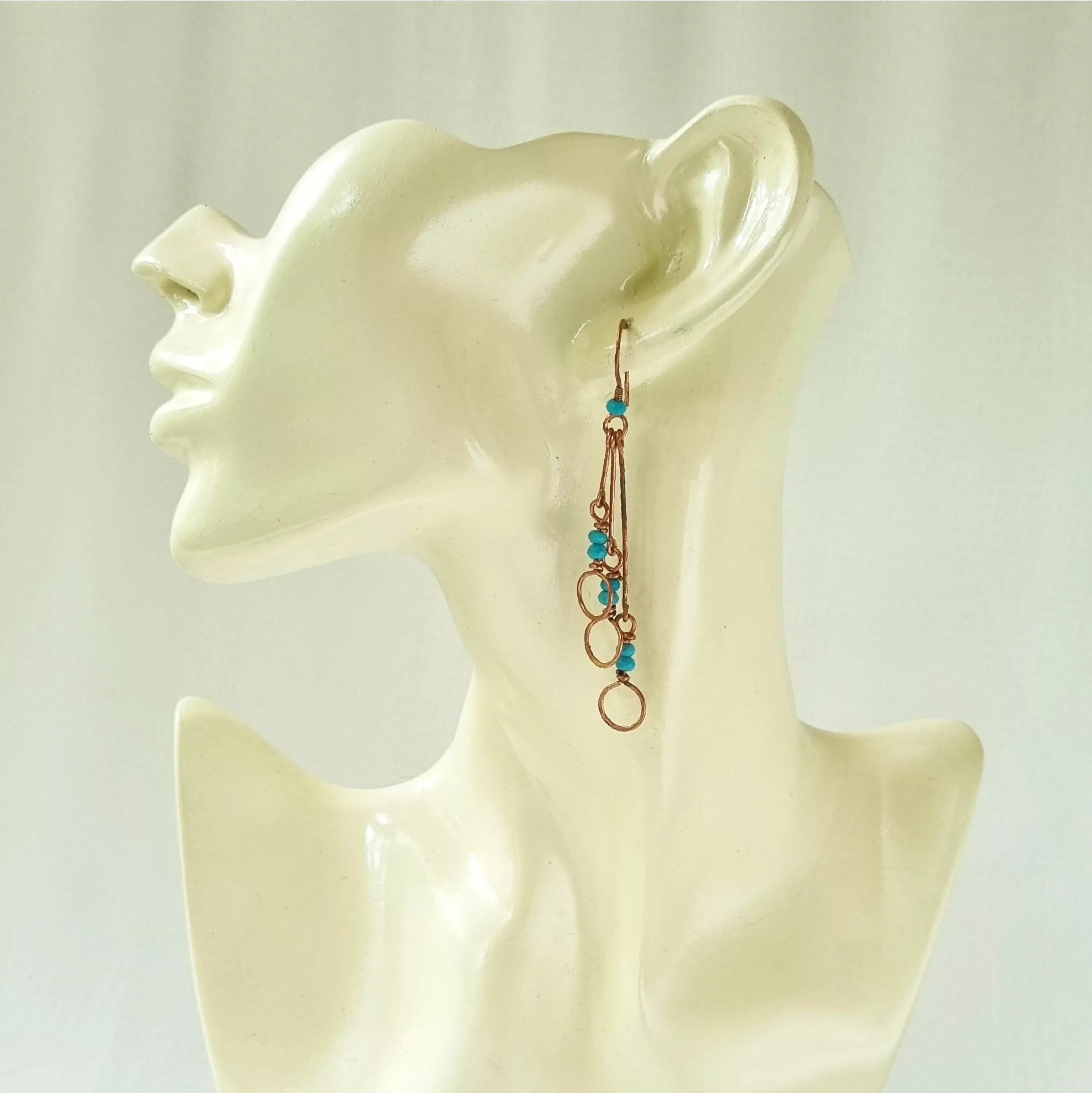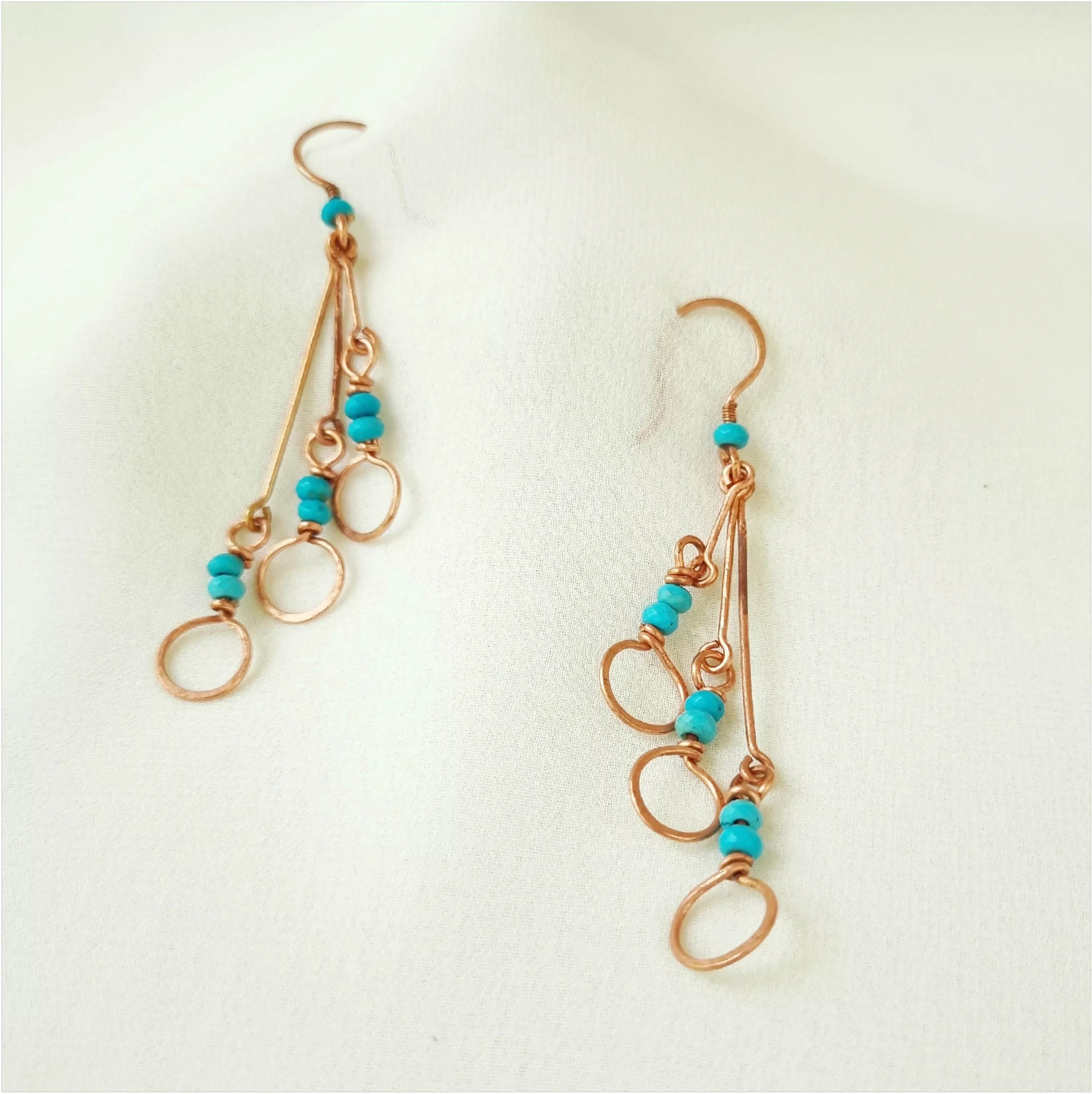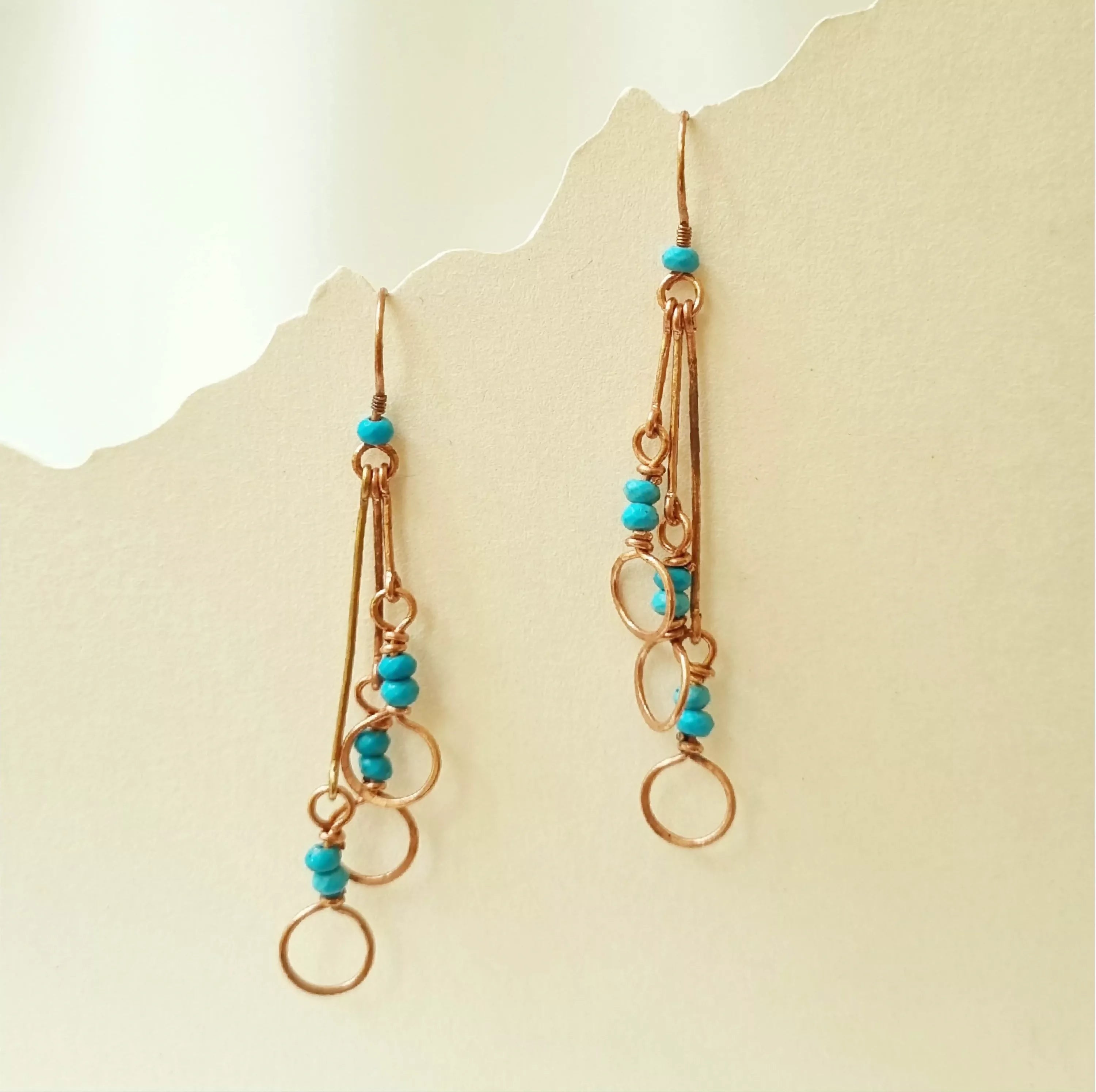 This cheerful pair of Copper and Howlite earrings is sure to brighten your day! Blue Howlite has a calming energy, and promotes truth and self-expression. May it bring balance and emotional stability into your life.