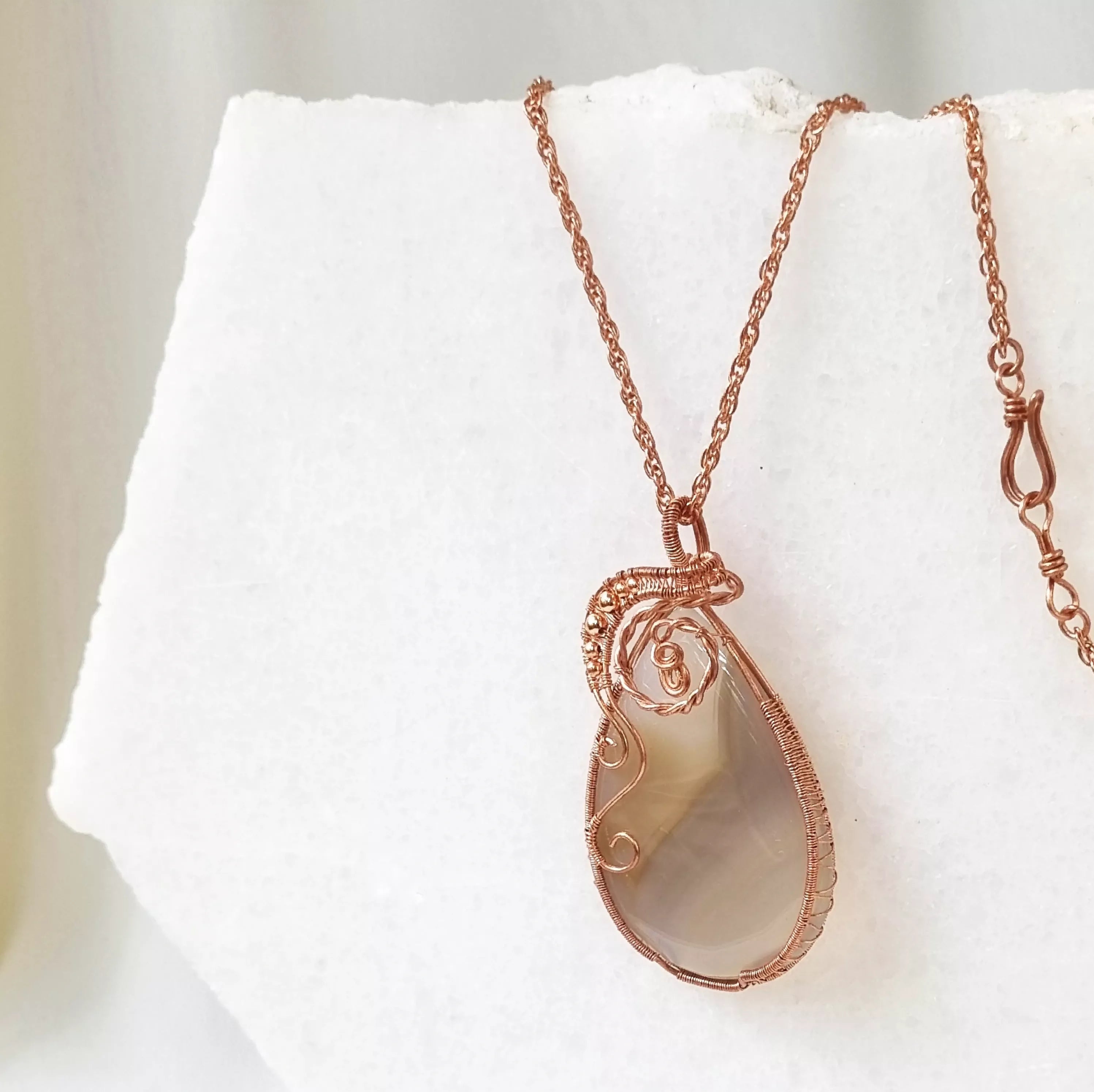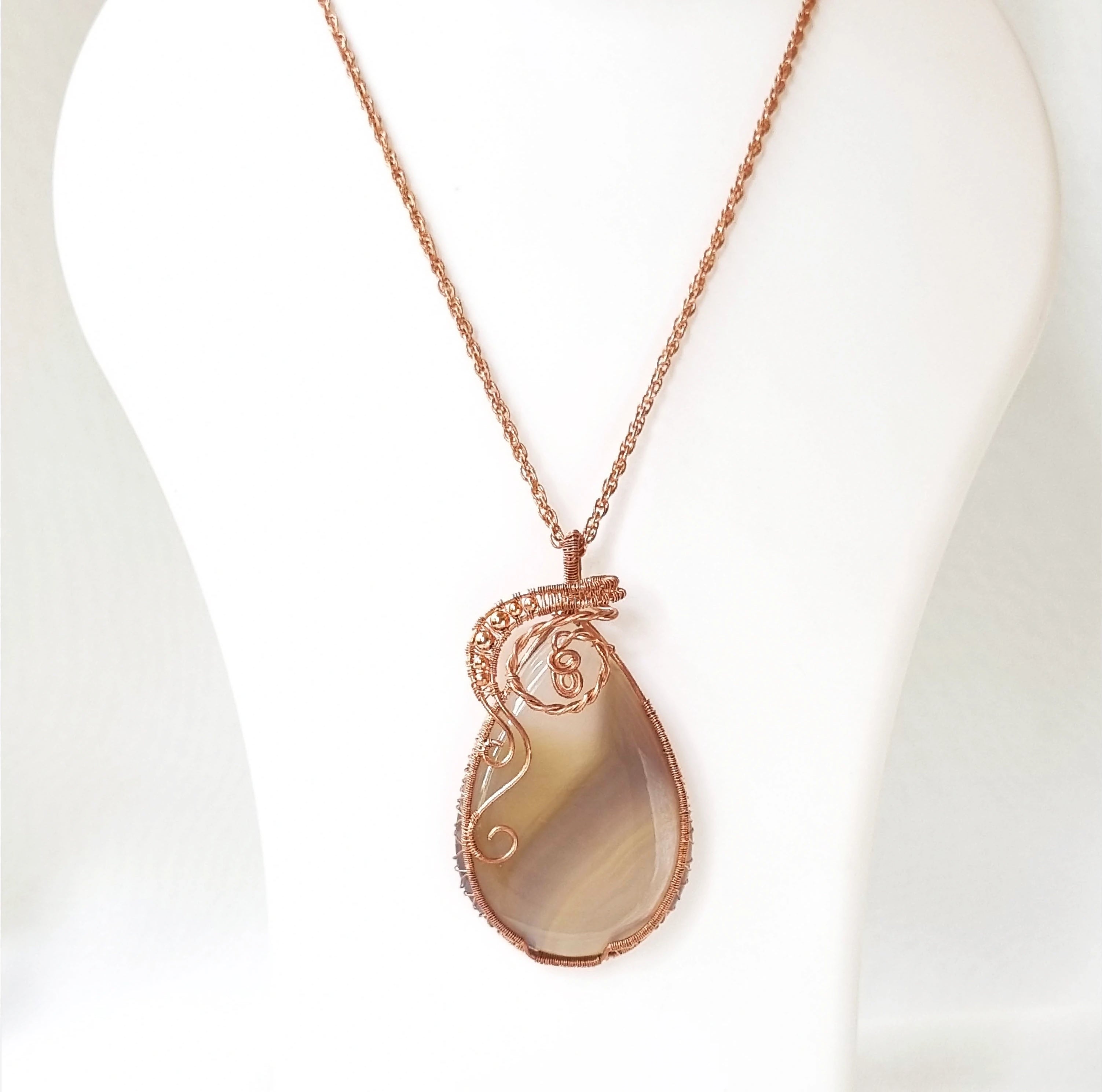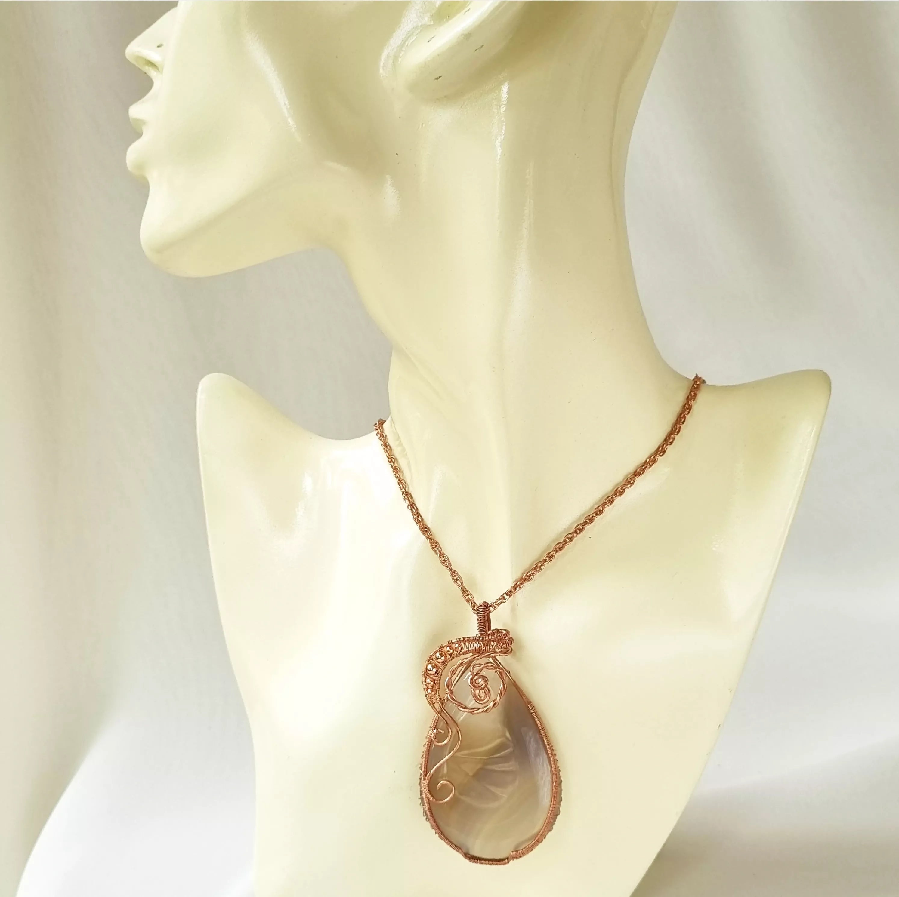 May the healing energy of this gorgeous Agate and Copper necklace help re-balance and harmonize your mind, body and spirit. This crystal will give you strength and courage, and protect you from negative influences.