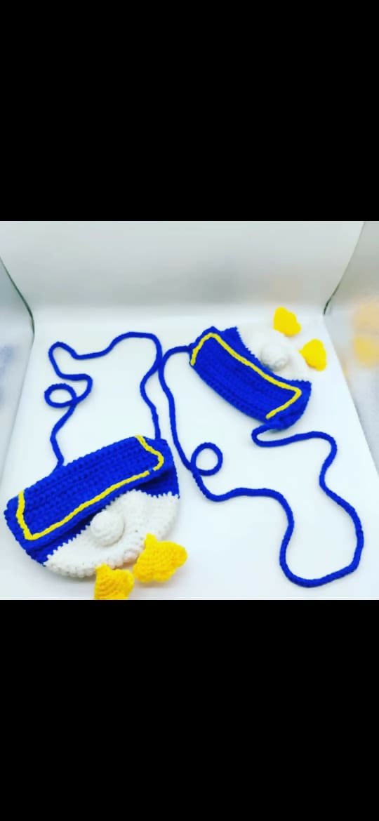 Adorable handmade crochet sling bags designed for kids, featuring playful cartoon-inspired patterns and vibrant colors. Perfect for carrying small items while adding a fun, creative touch to any outfit.