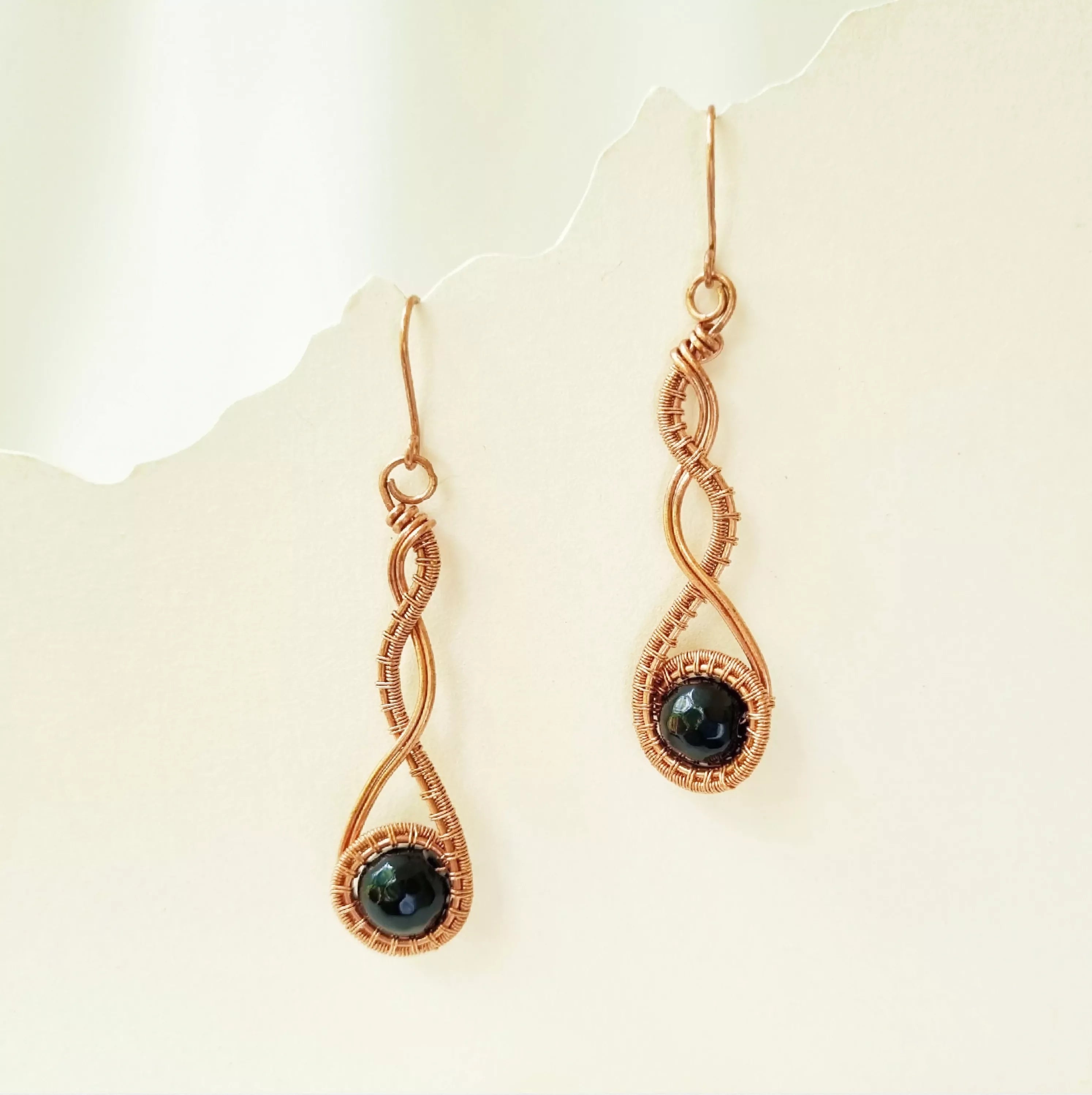 May this pair of handcrafted Copper and Black Onyx earrings bring you confidence and strength on you path to abundance. Black onyx crystals can be used for grounding, protection, and self-control, and as a shield against negative energy. This beautiful gemstone helps to balance yin and yang.