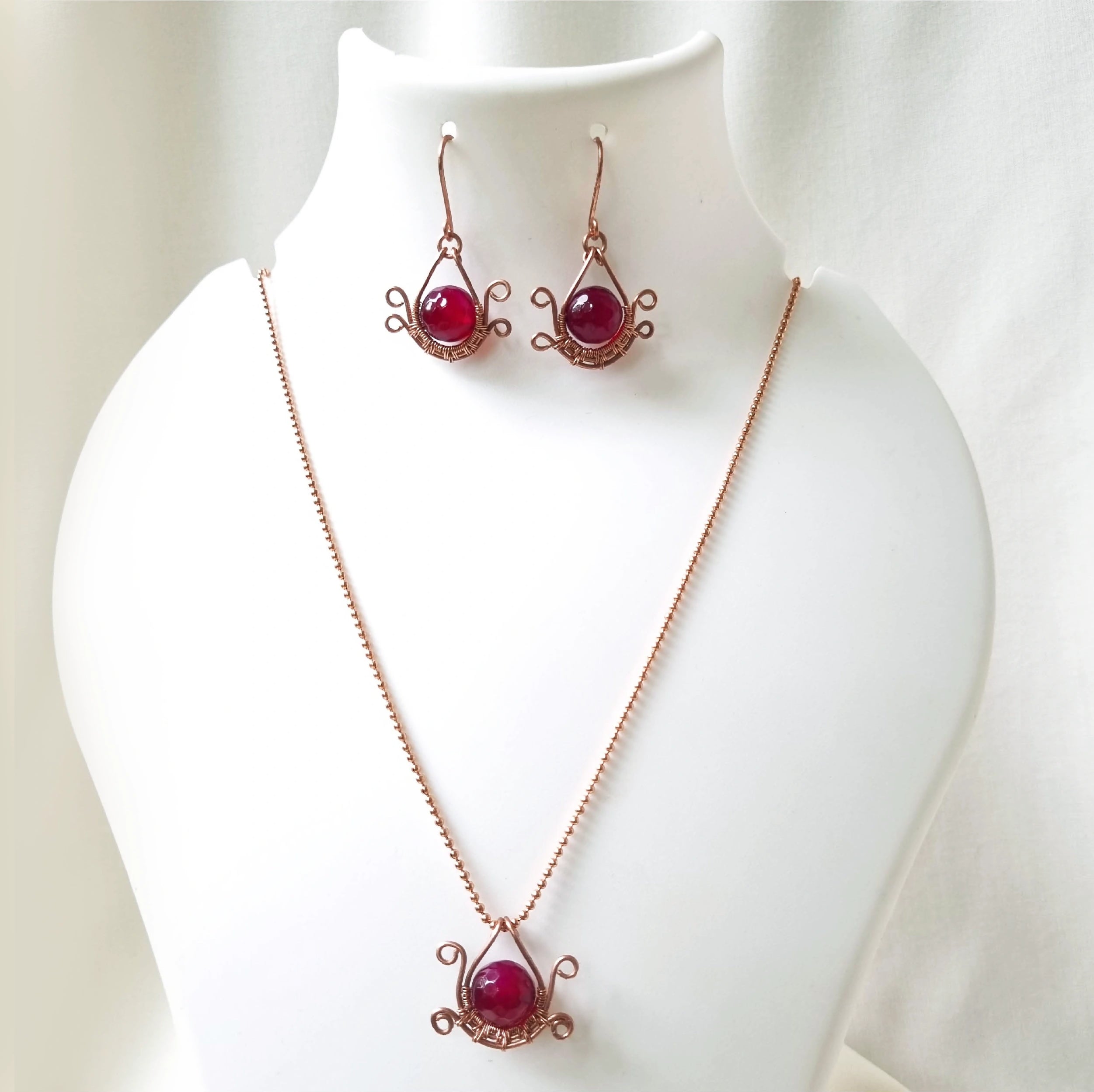 This gorgeous Magenta Agate and copper set has been handcrafted specially for you. It's time to step out in style and paint the town red!