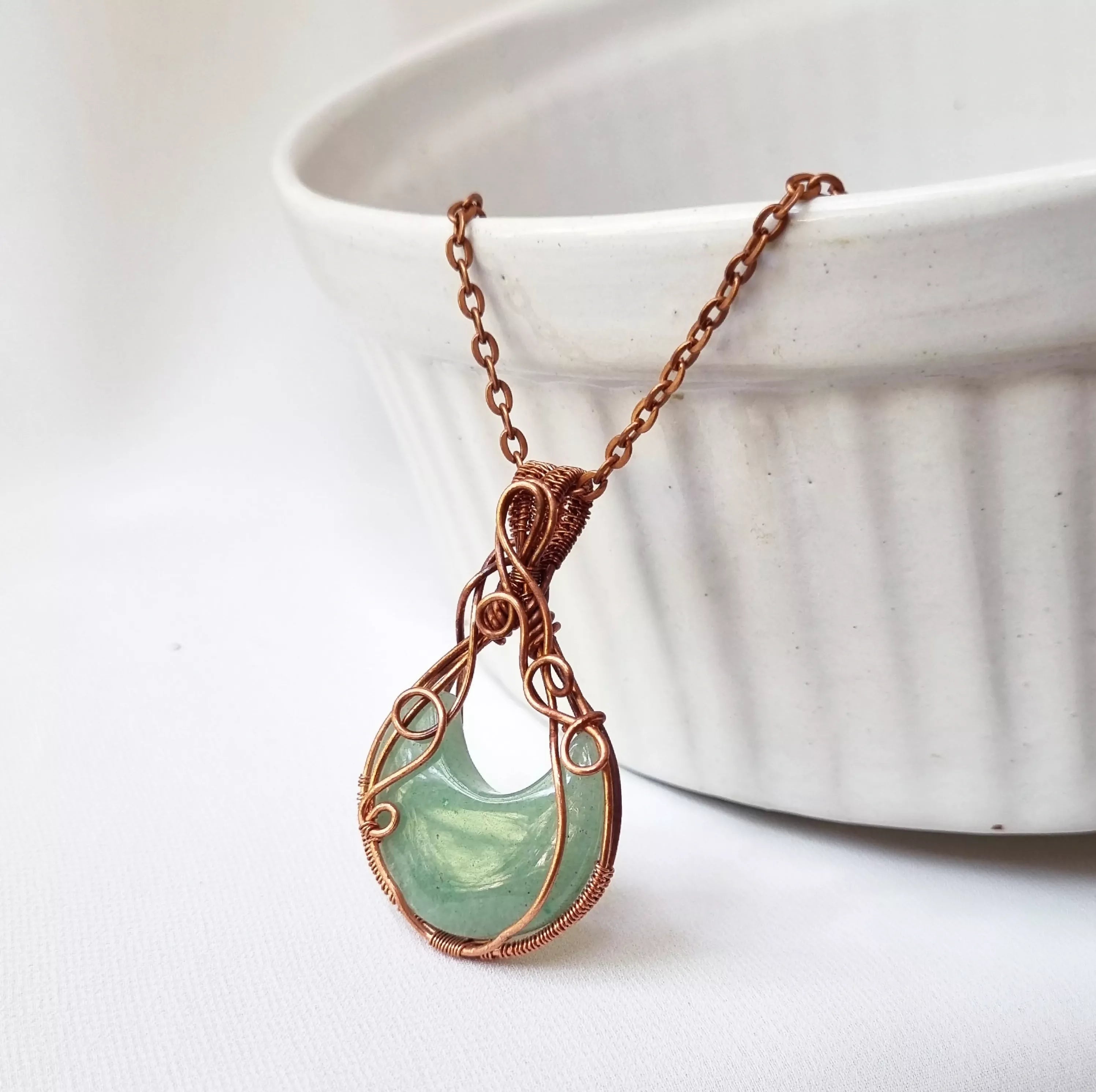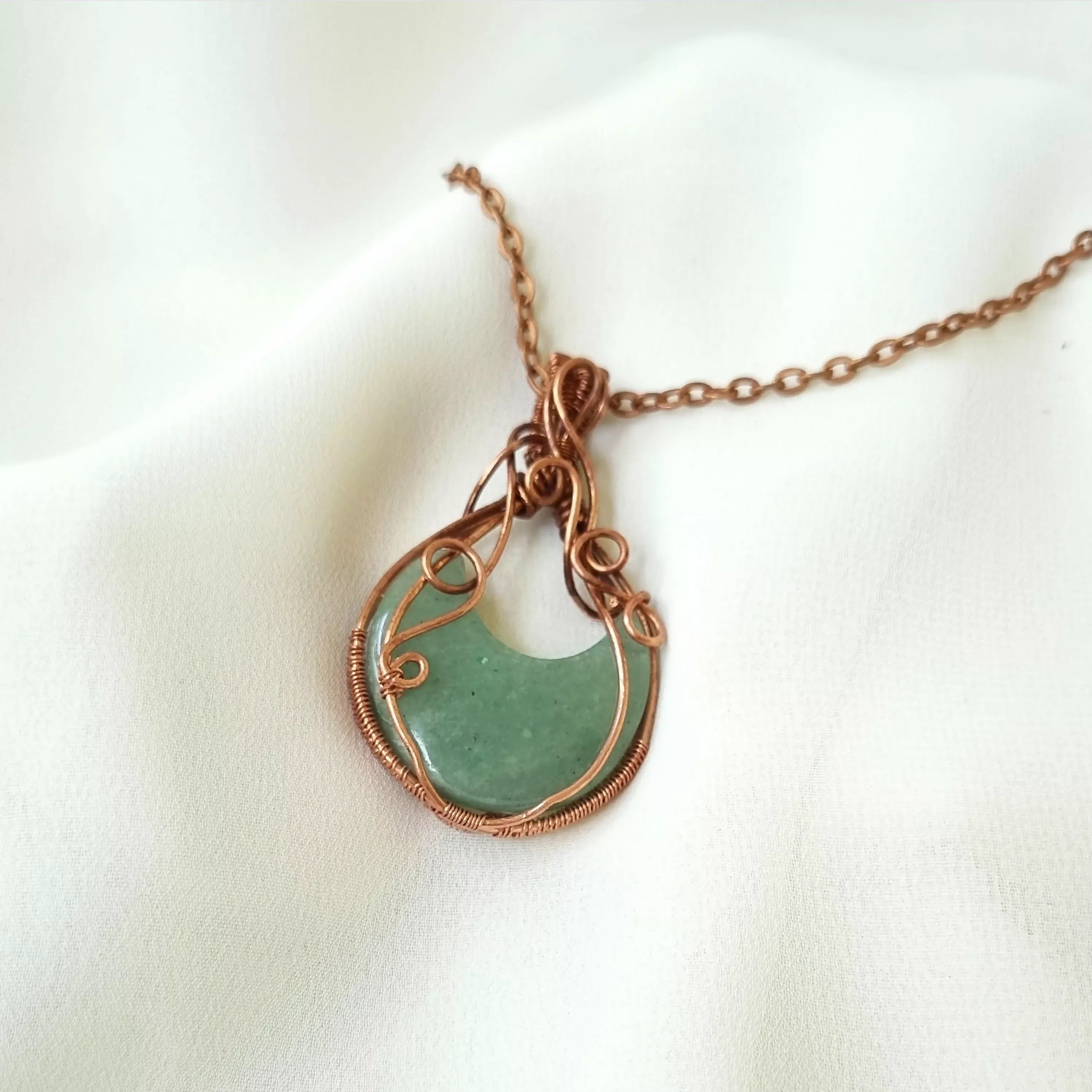 This gorgeous Aventurine and Copper pendant Will bring you good luck and abundance. This gemstone promotes emotional balance and physical health.