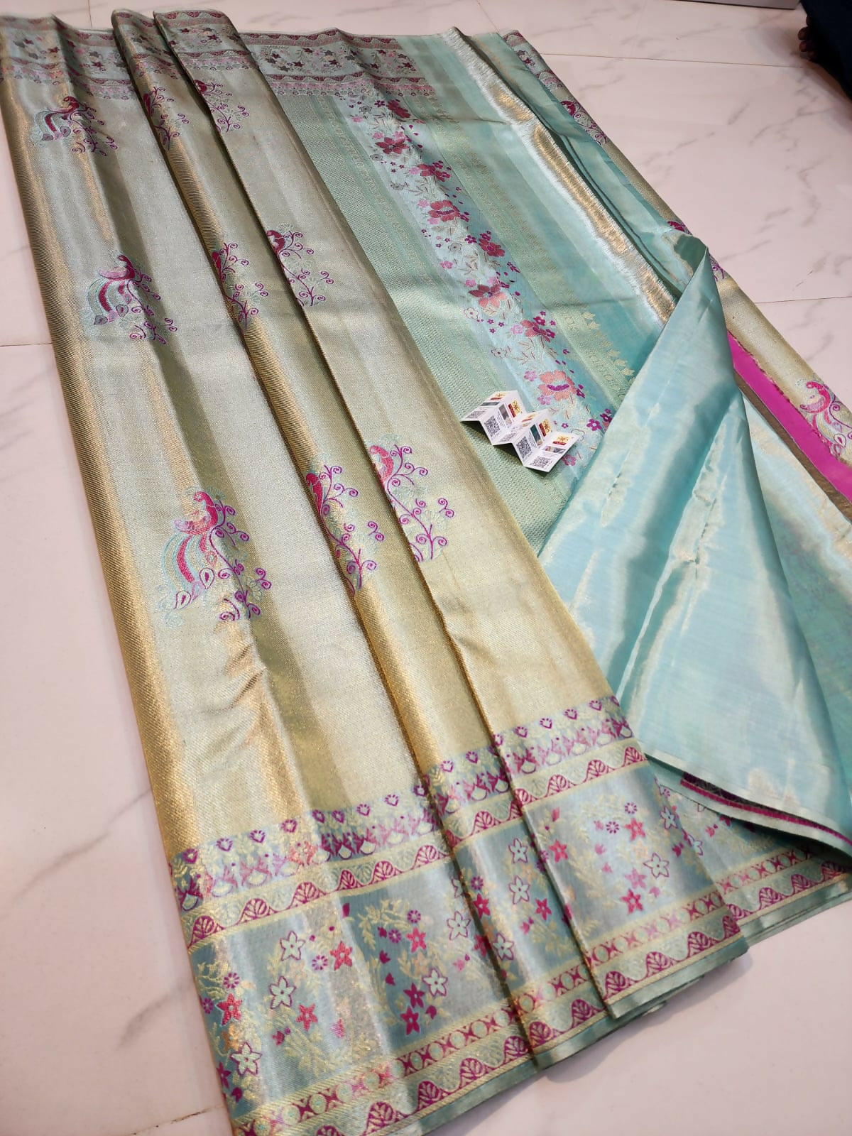 Product Description (Pastel Shade Pure Handloom Kanchi Pattu Tissue Sarees)