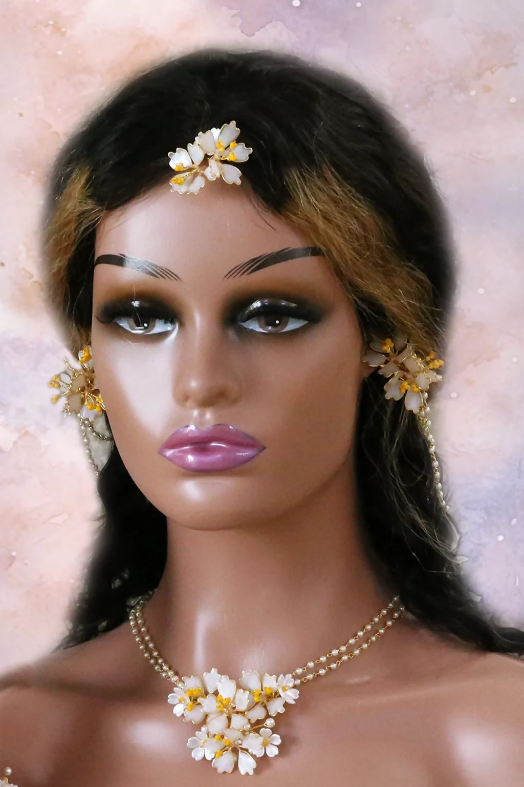 Vaishnavi’s White Blossom – Minimalist Resin Floral Bridal Maangtika | Sunflower Serenity Collection