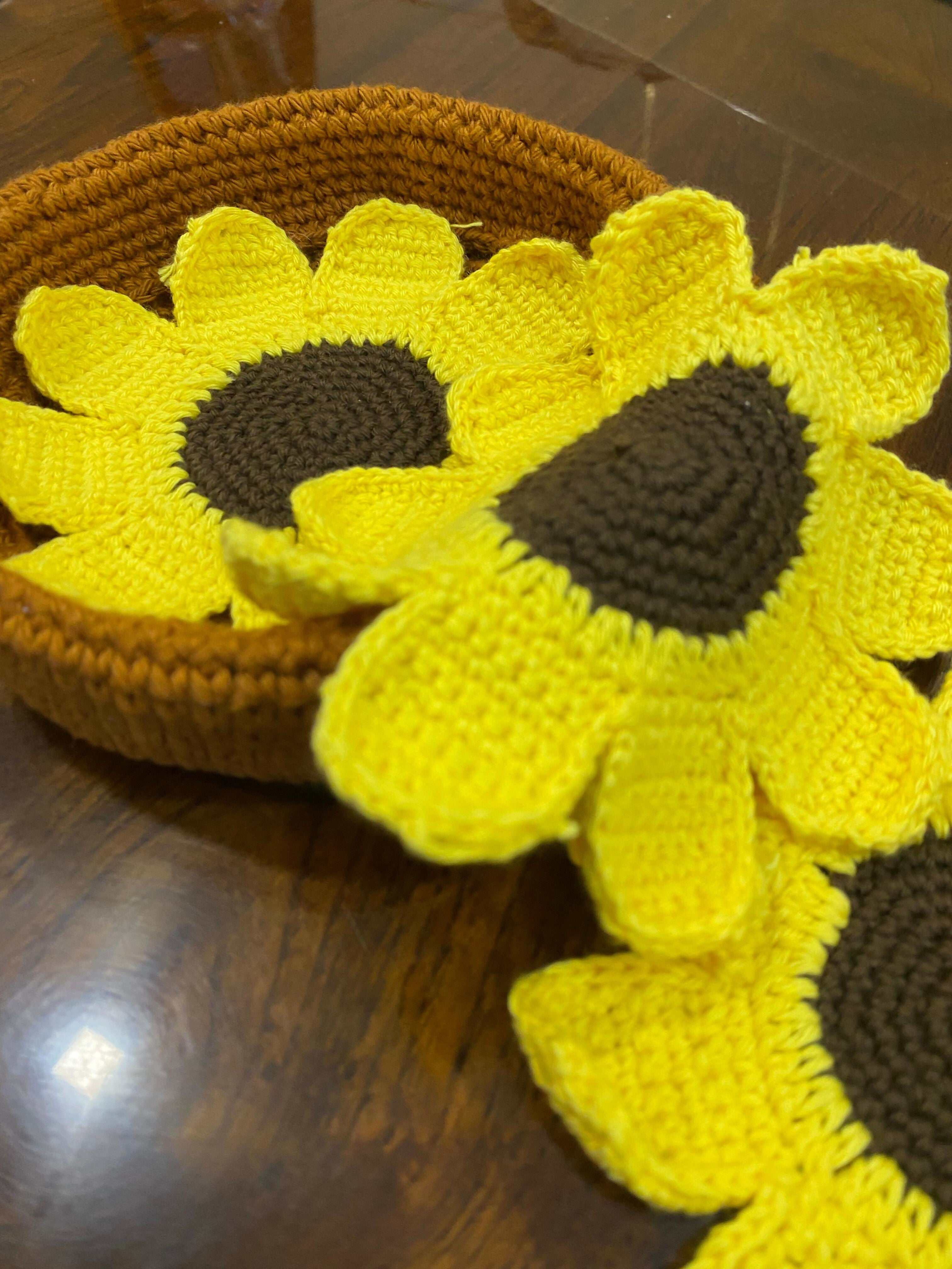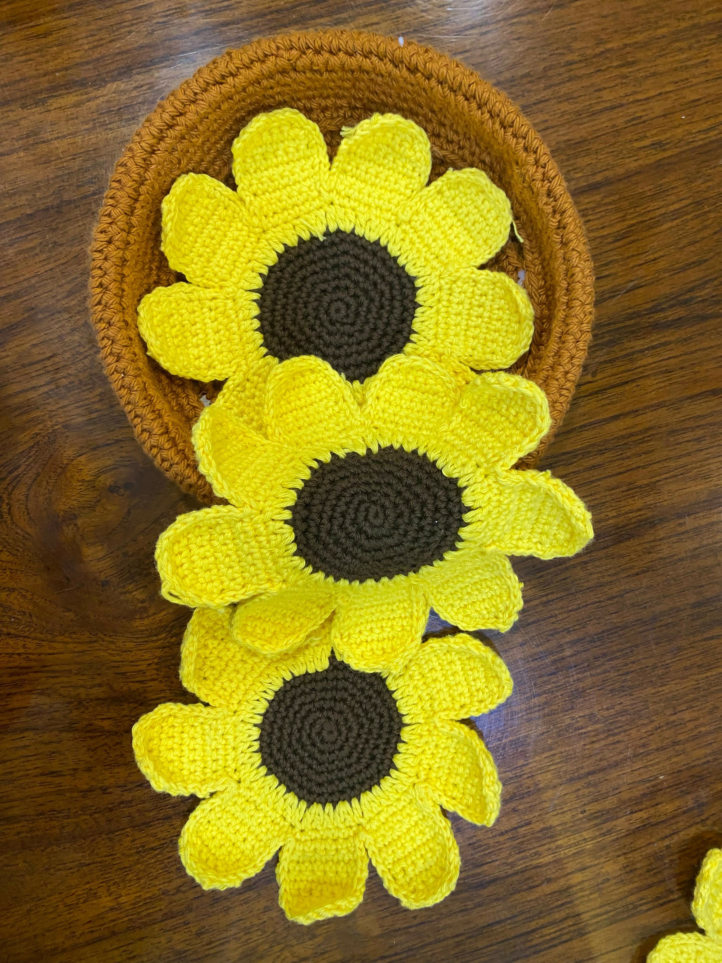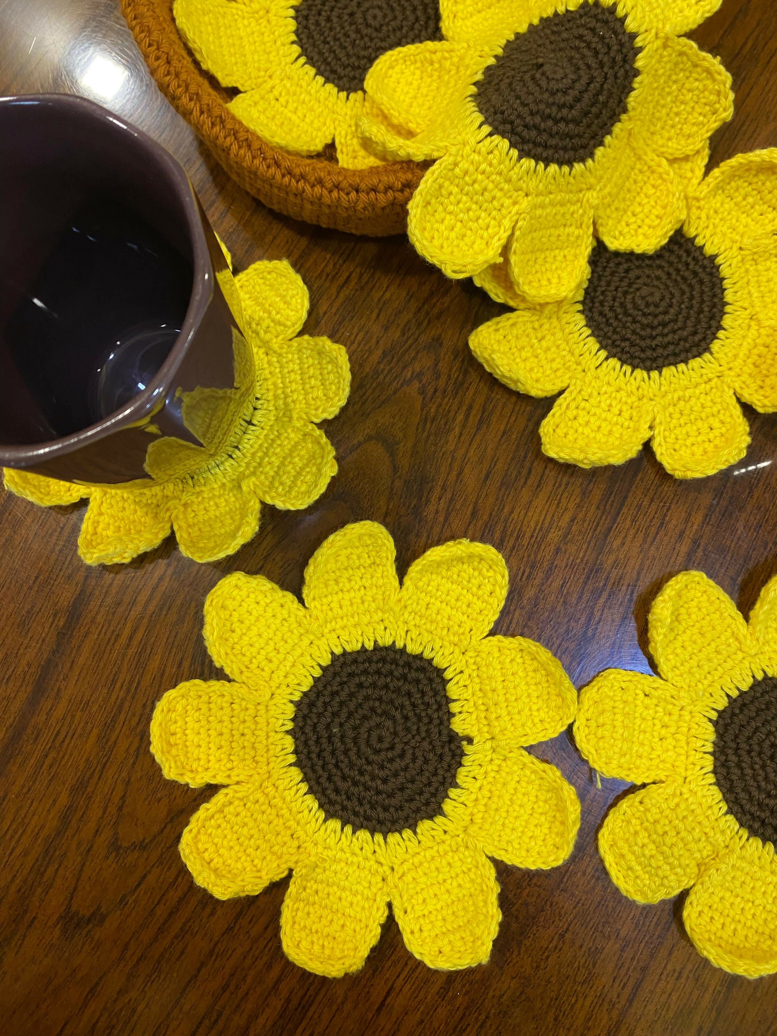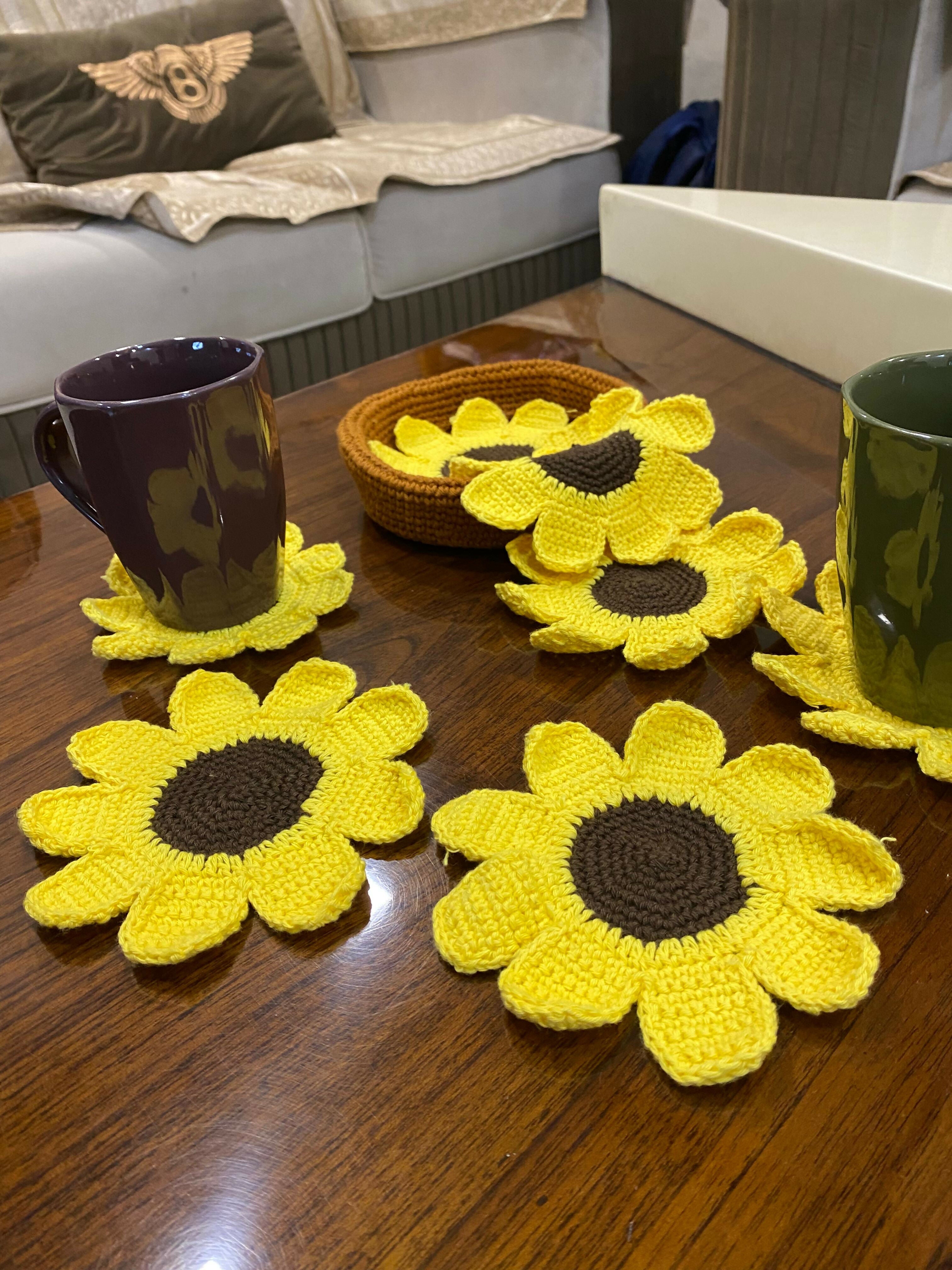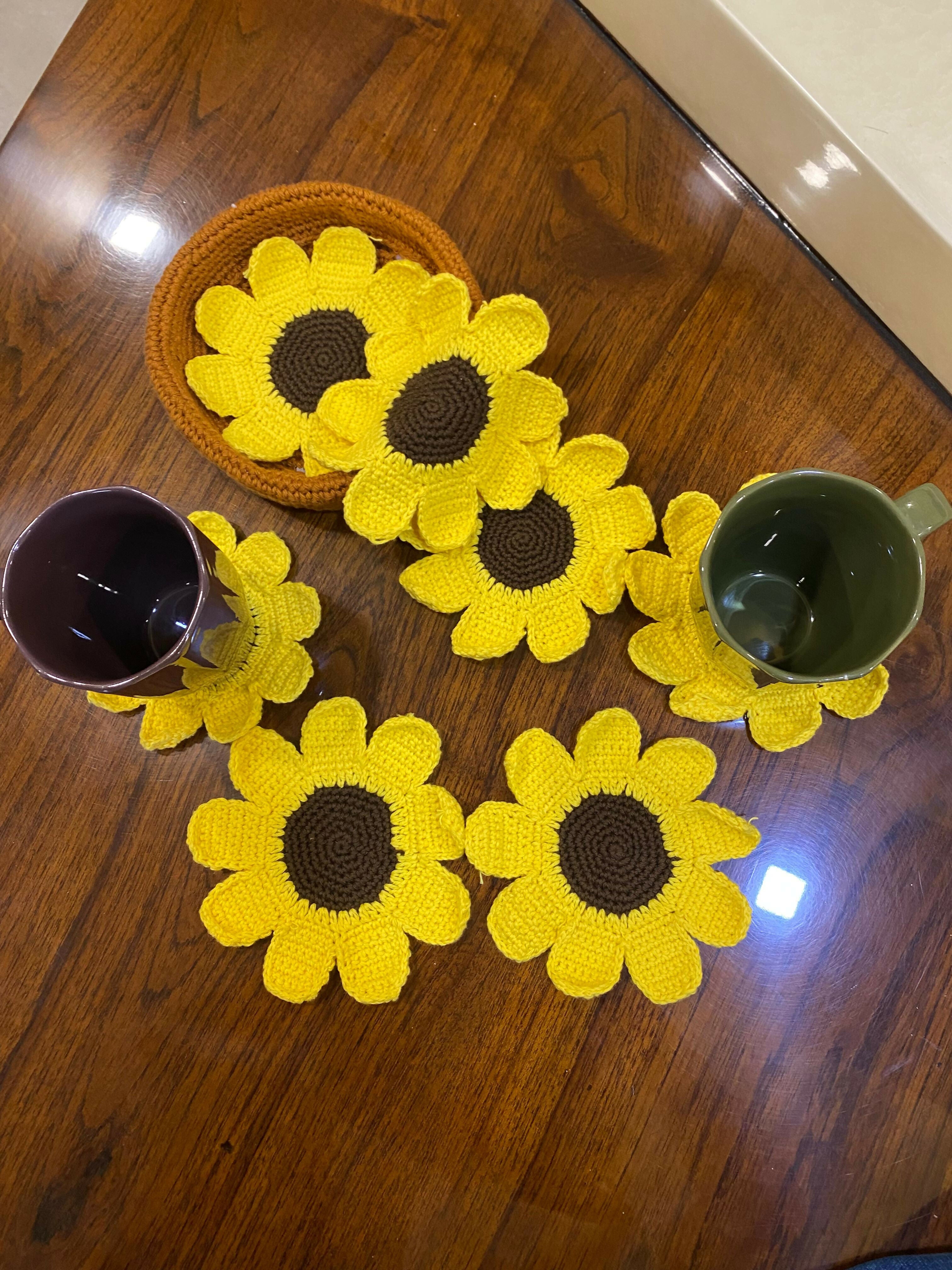 Handmade with 100% cotton yarn, this charming sunflower set includes 6 coasters and one matching basket. Brighten your table with functional, decorative flair—perfect for daily use or gifting.