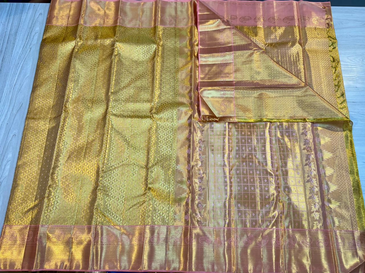 Product Description (Golden Shade Pure Handloom Kanchi Pattu Bridal Sarees )