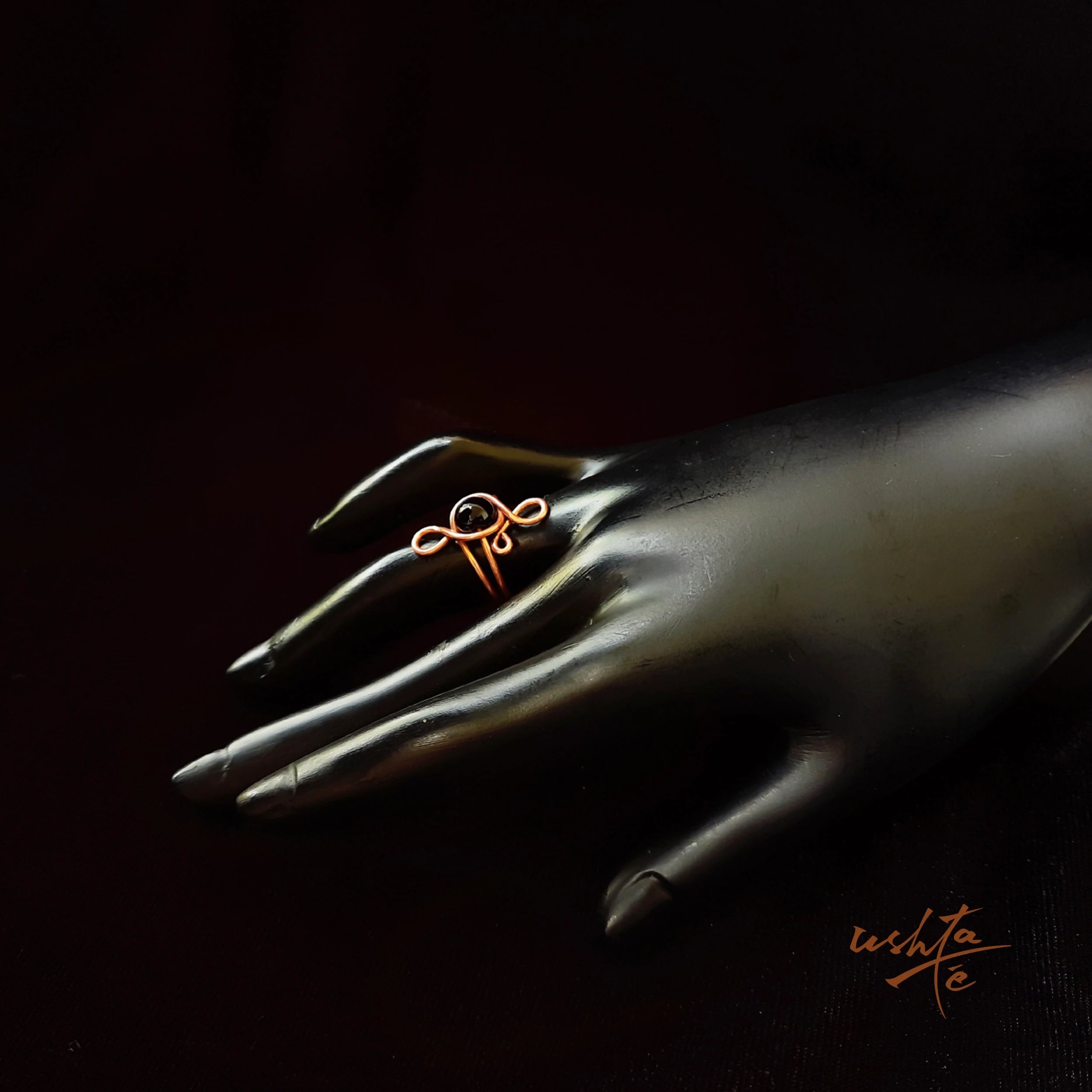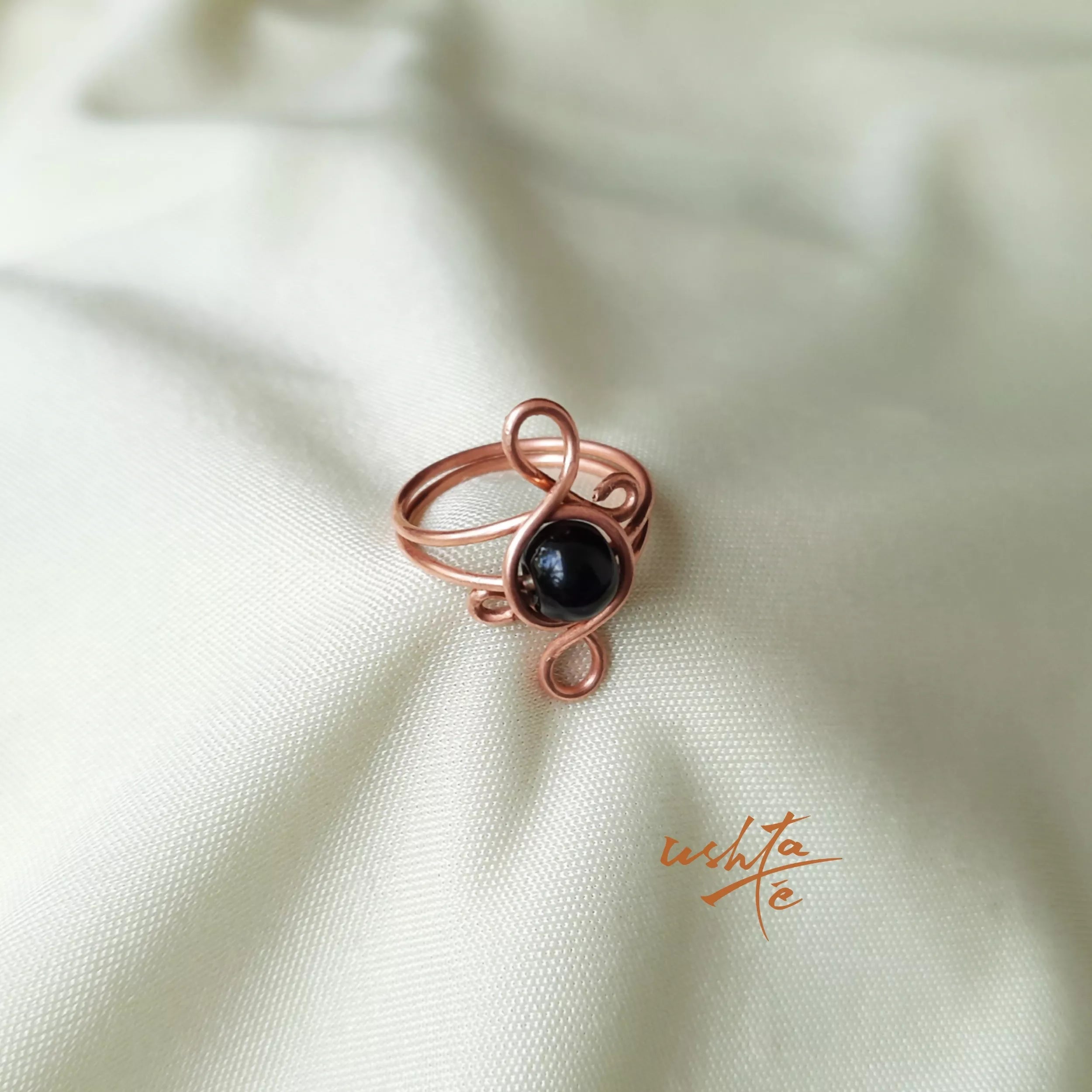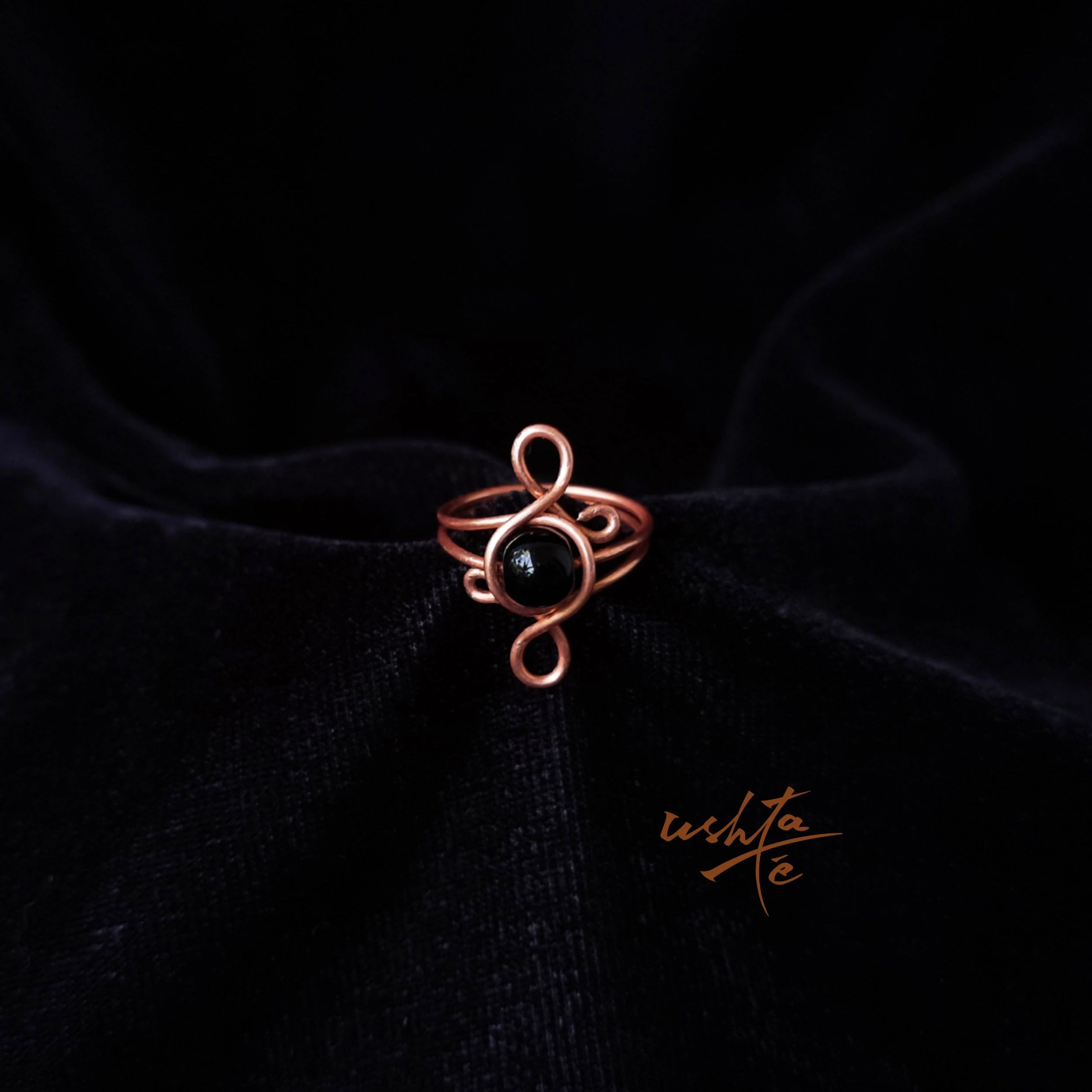 Get drawn into the loops of the purest copper metal holding a gorgeous black wooden bead