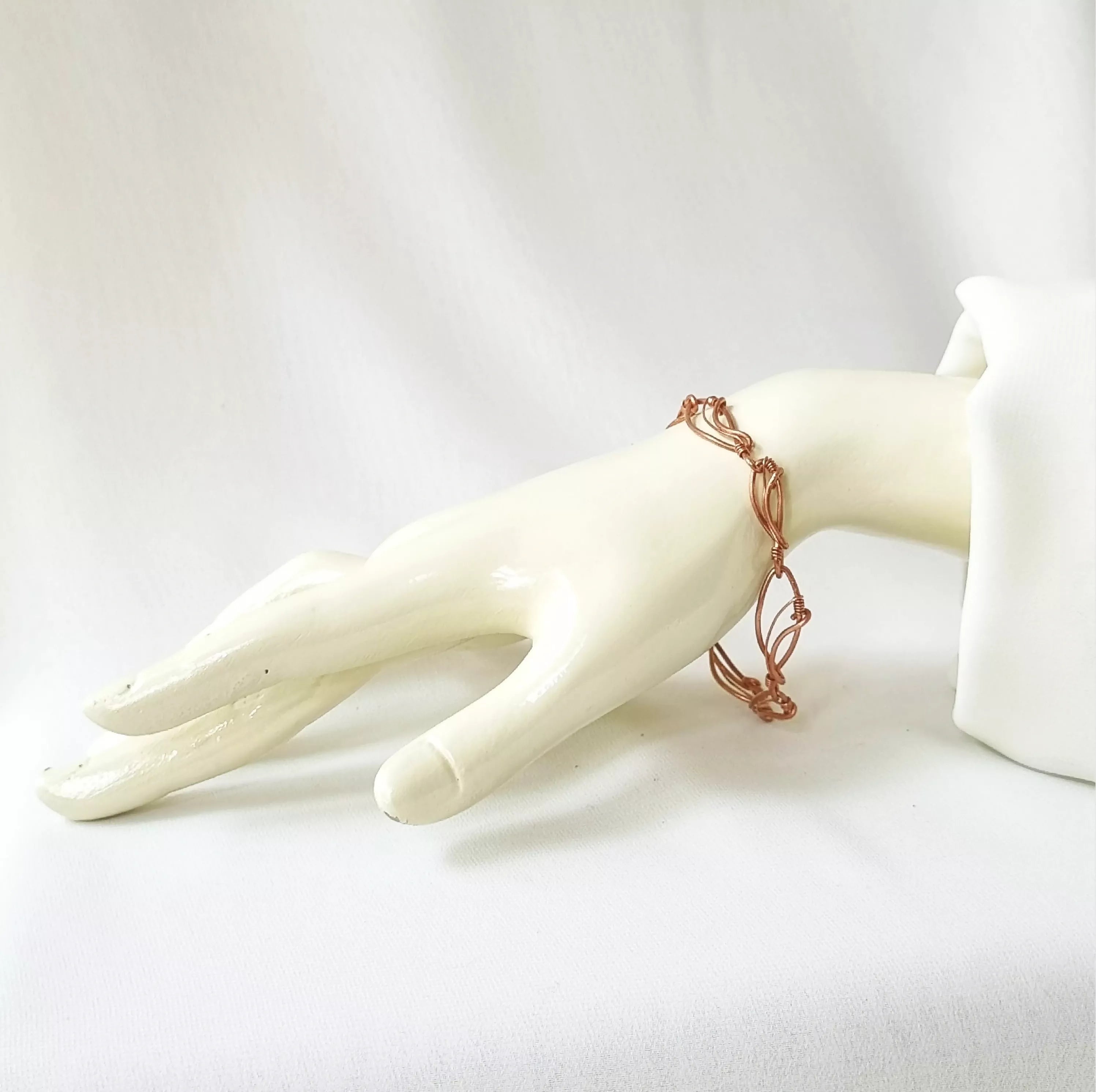 This elegant copper bracelet is perfect for everyday wear. Wearing copper regularly improves the immune system. It has antibacterial and antioxidant properties, and maintains blood pressure. It helps strengthen the bones and promotes absorption of minerals. It can improve skin health and helps in weight loss by reducing swelling.