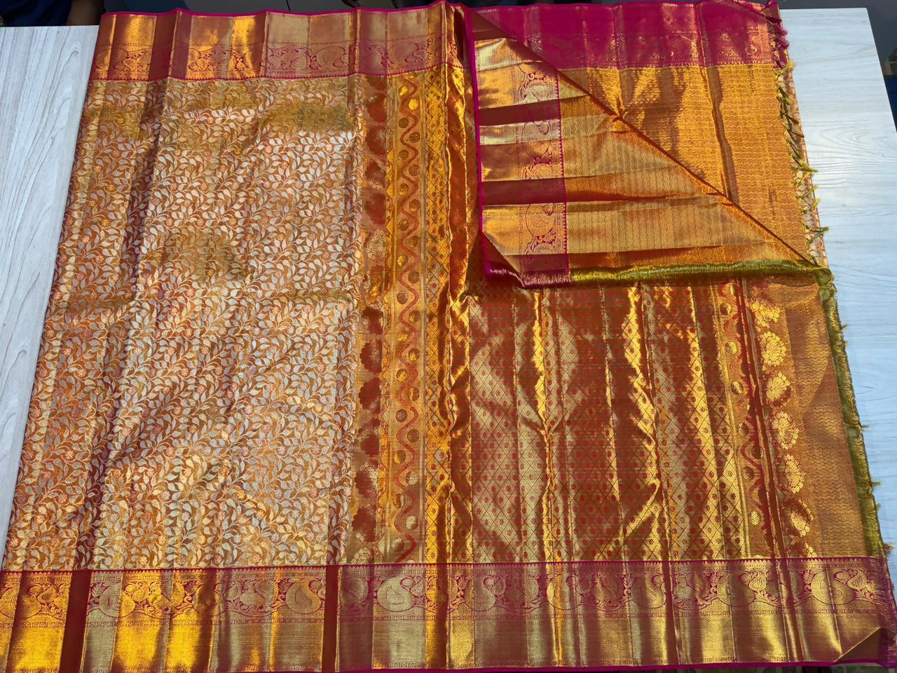 Product Description (Golden Shade Pure Handloom Kanchi Pattu Bridal Sarees )