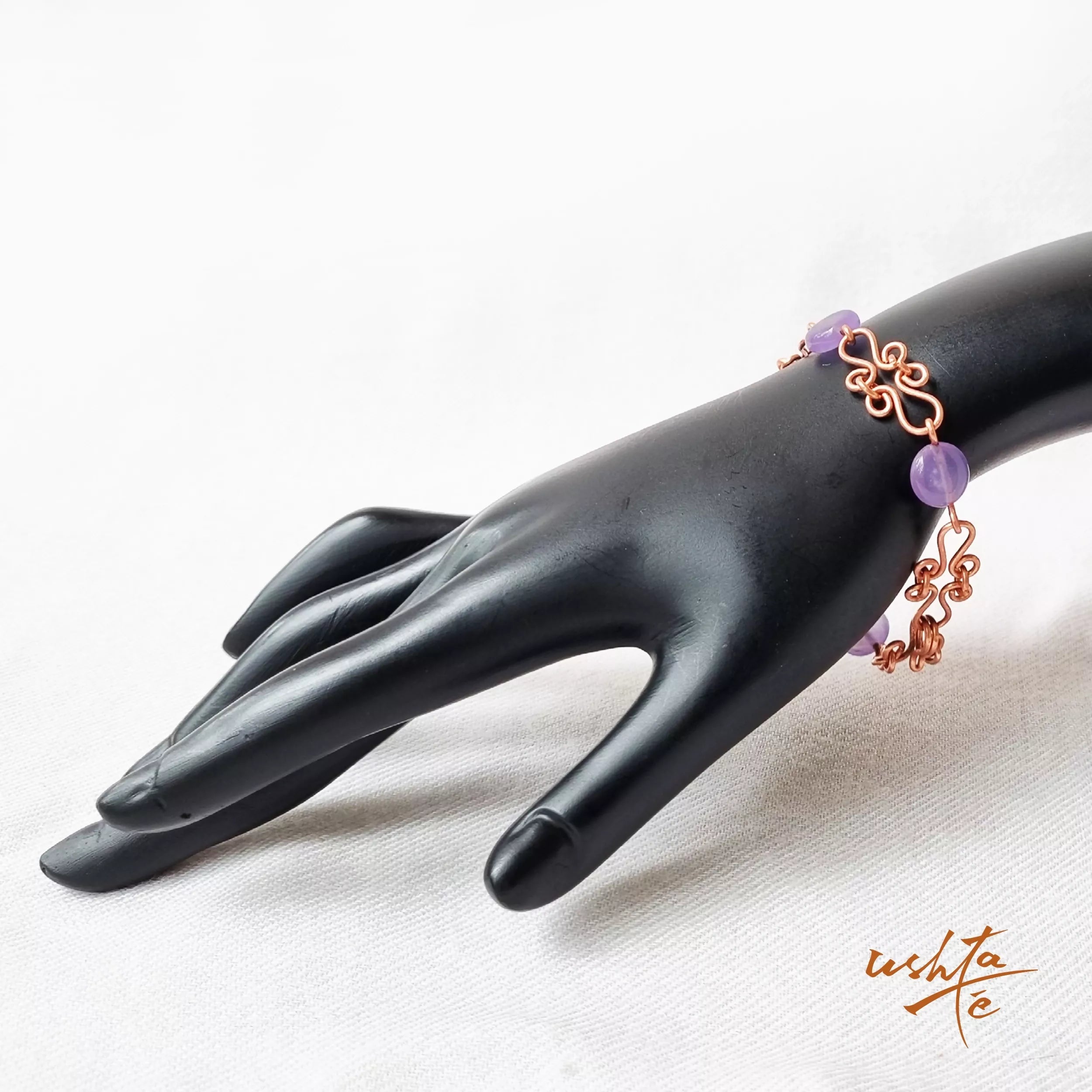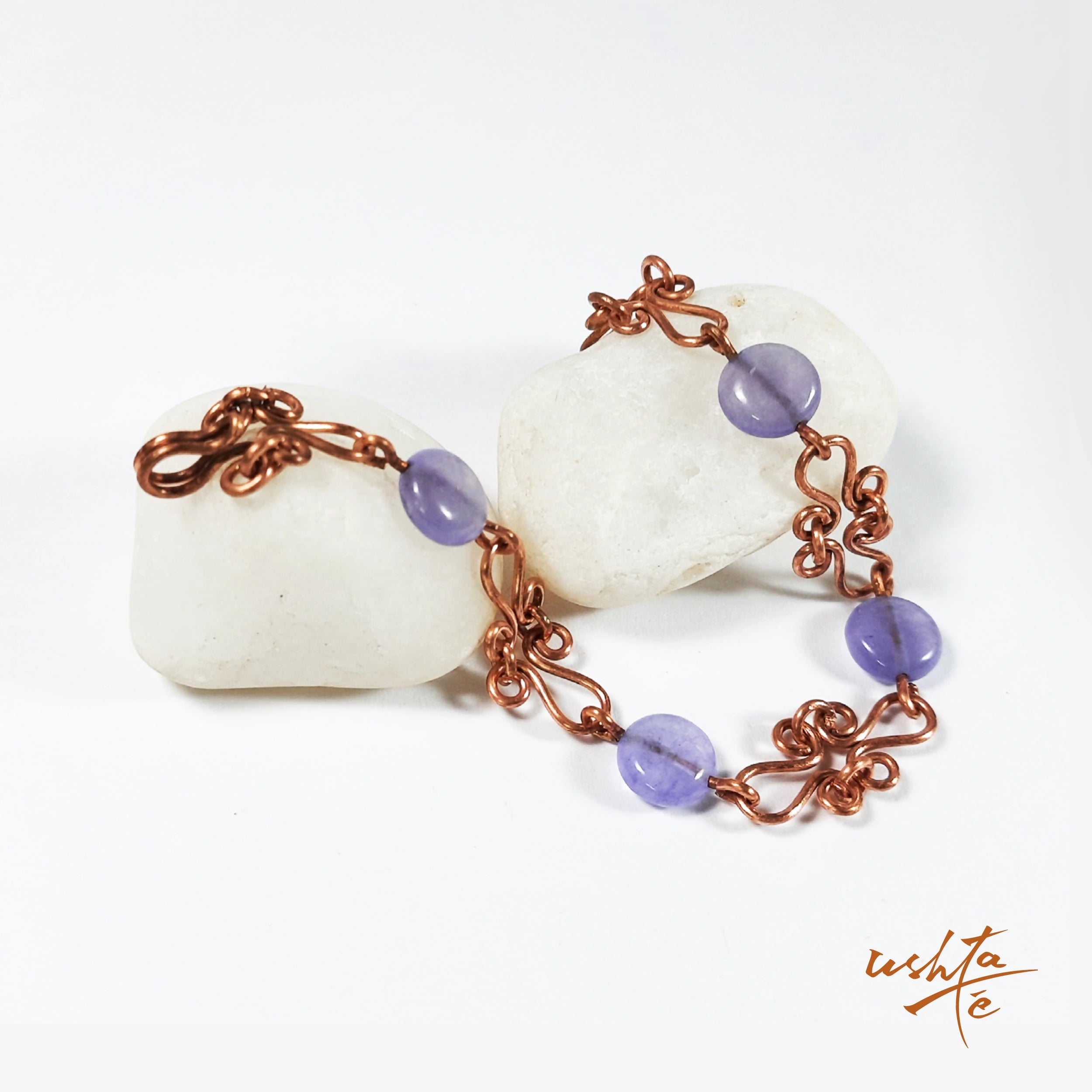 Lock your senses into these delicate lavender Agate and copper tendrils