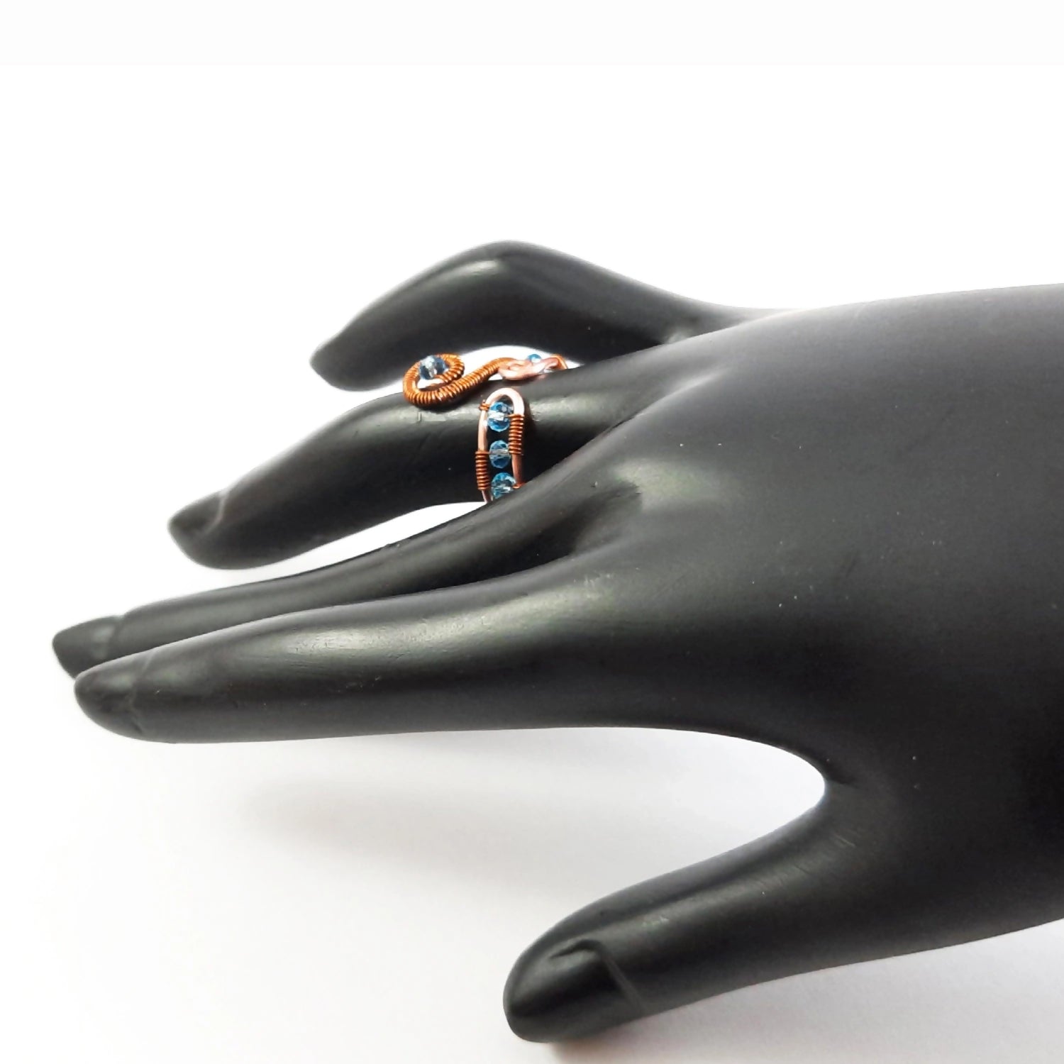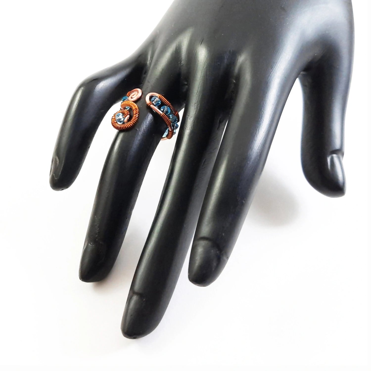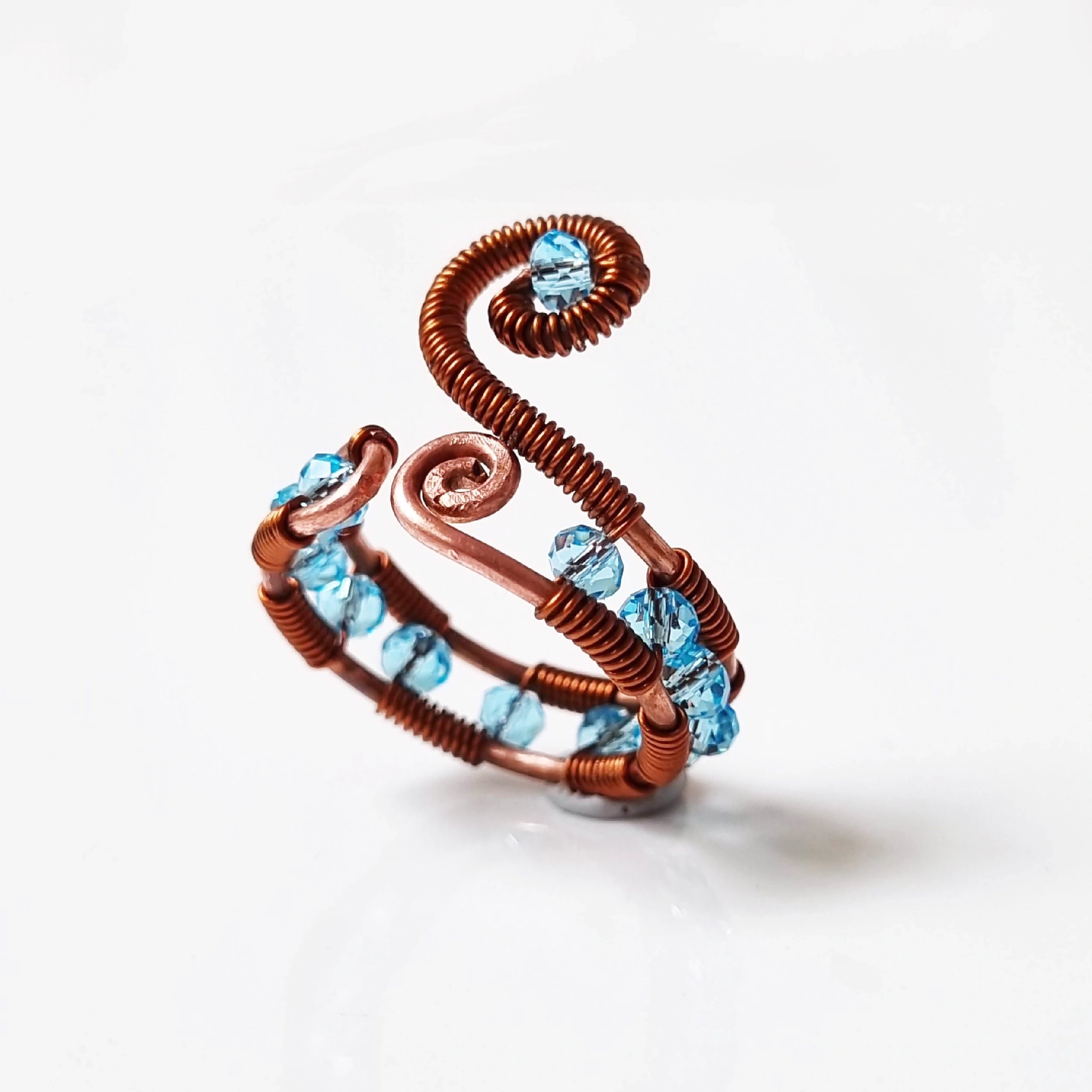 Let these beautiful blue crystal beads wrapped in copper awaken happy memories of peace and love.