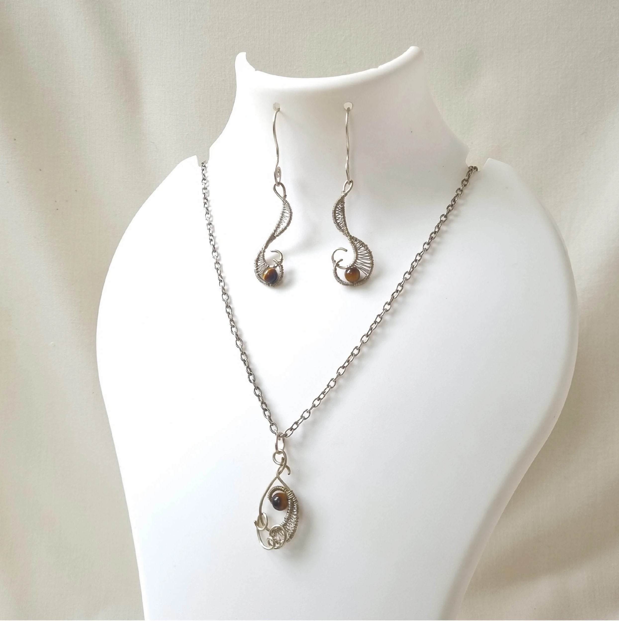 This beautiful set has been handcrafted with silver-plated copper and TIGER EYE stone. This stone's healing energy will raise your self-esteem and enhance your creativity.