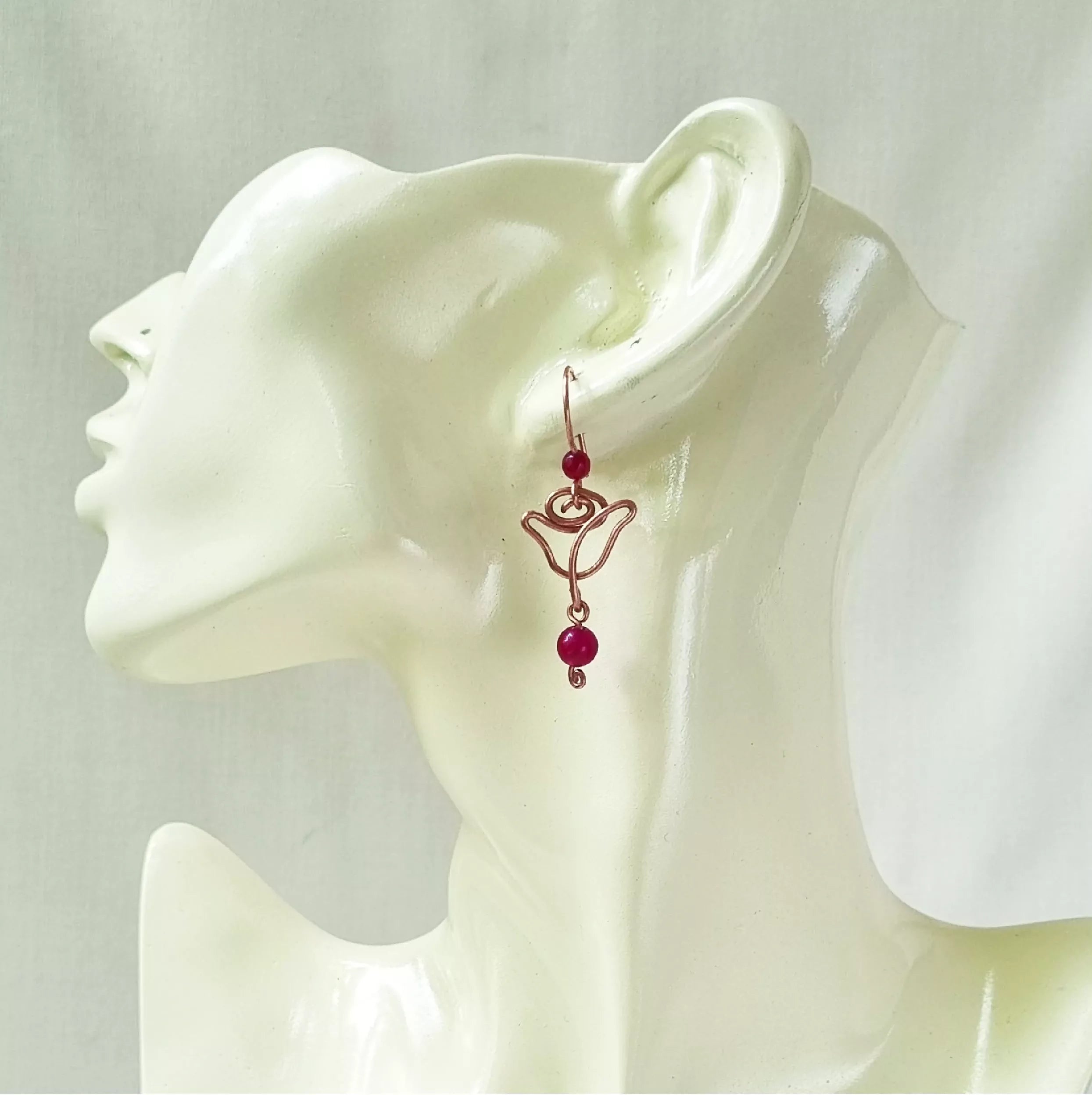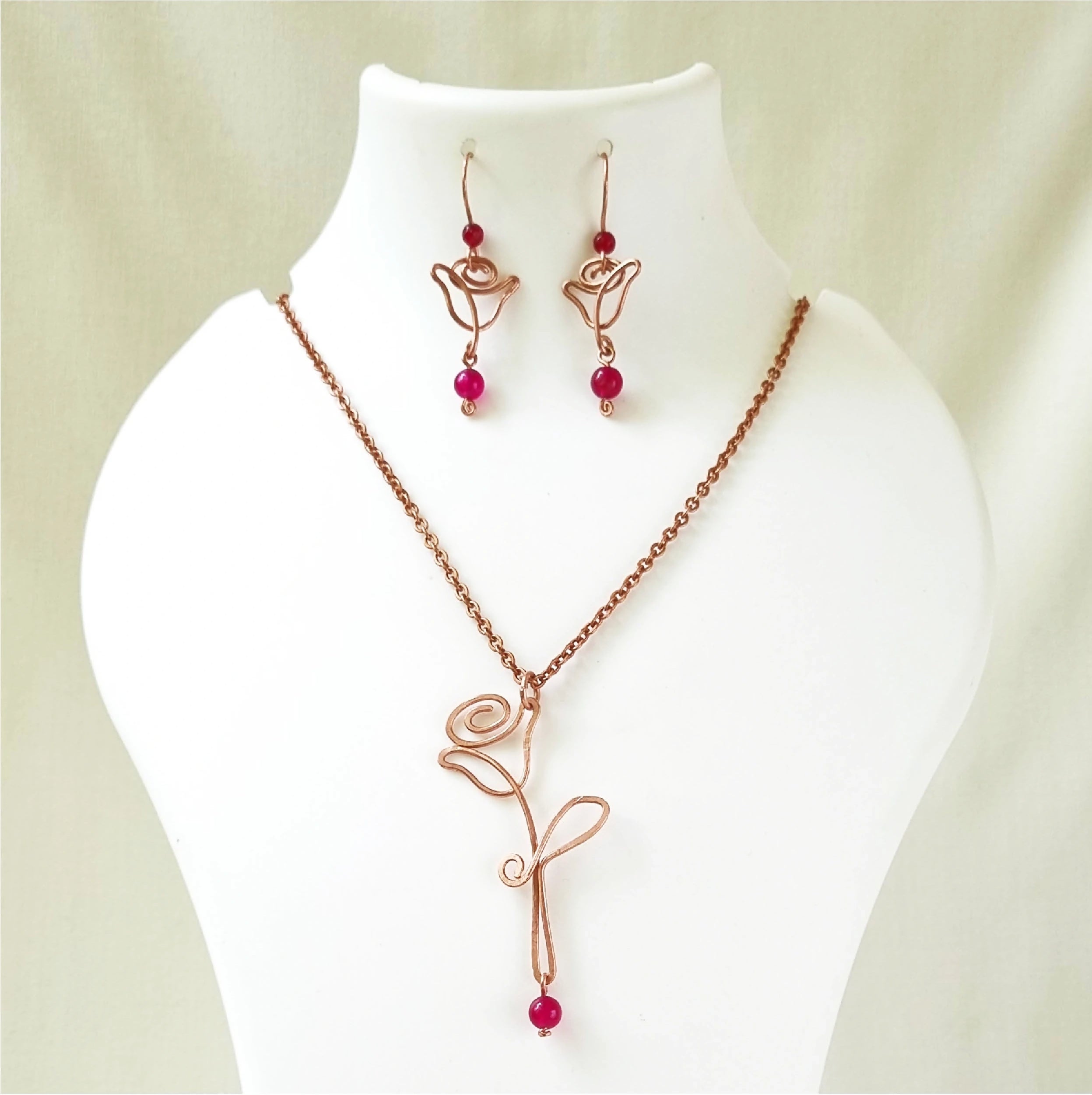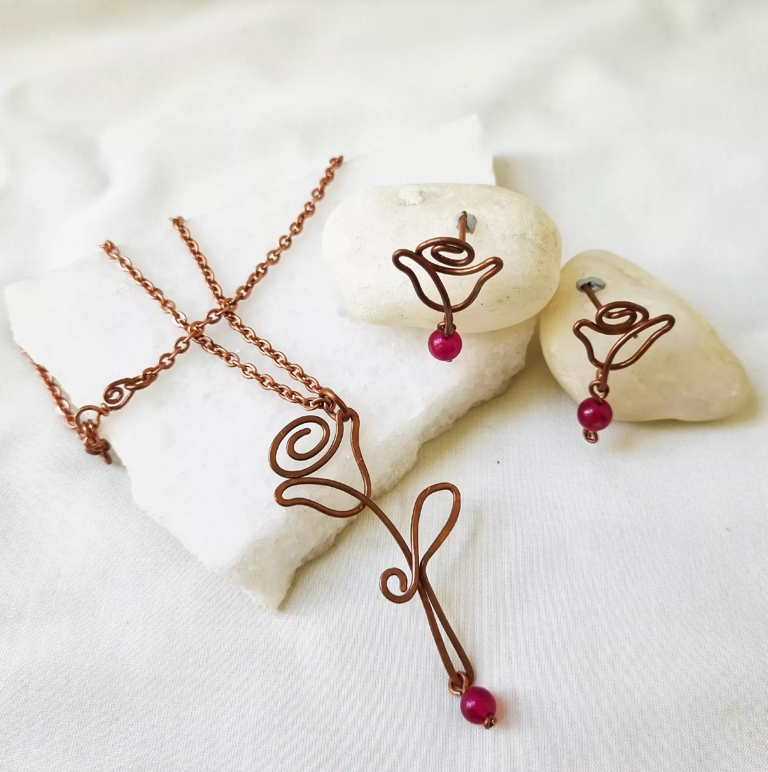This beautiful set has been handcrafted with pure Copper and Red Jade stone. This stone's healing energy will raise your physical vitality, passion, and strength by eliminating fear, doubt, and worry.