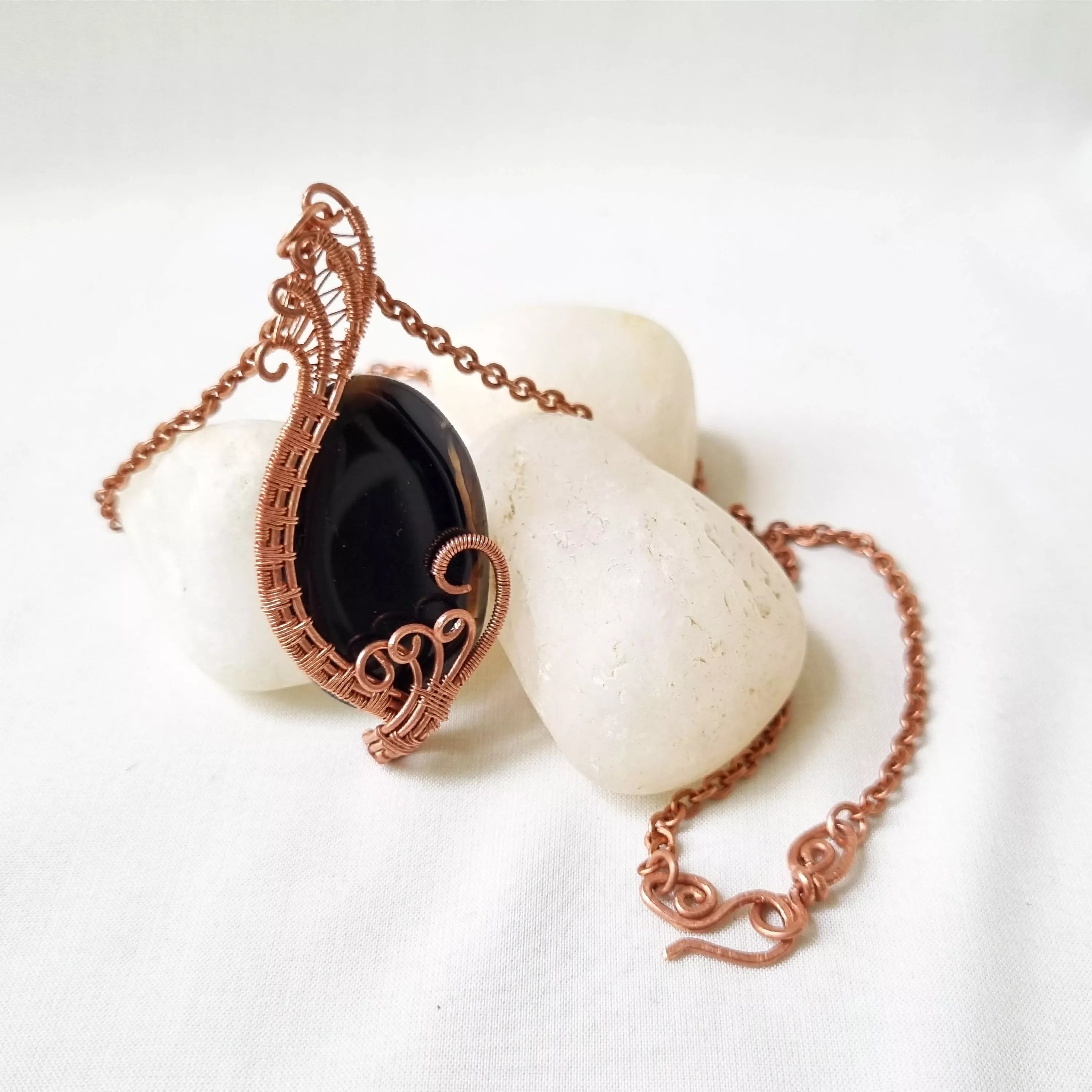 May the healing energy of this gorgeous agate and copper necklace help re-balance and harmonize your mind, body and spirit. This crystal will give you strength and courage, and protect you from negative influences.