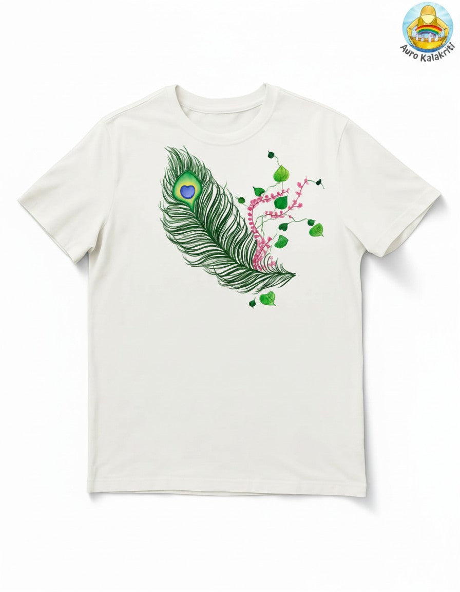 Mayuri Feather Tee — Hand-Painted Peacock Feather & Floral T-Shirt
