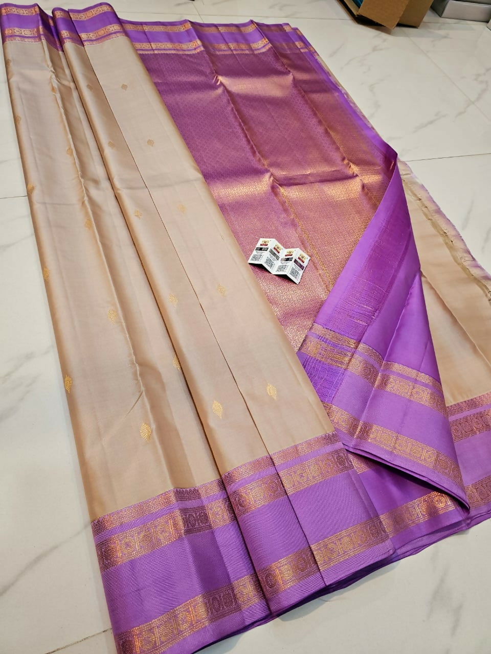 These are Trendy, Lightweight Pure Handloom Kanchi Pattu Sarees from Kanchi Maharani Handlooms, featuring vibrant contrasting colors (like Pink/Blue or Aqua/Purple) and traditional yet modern designs. Woven with tested zari, they offer comfort and style for contemporary festive wear.